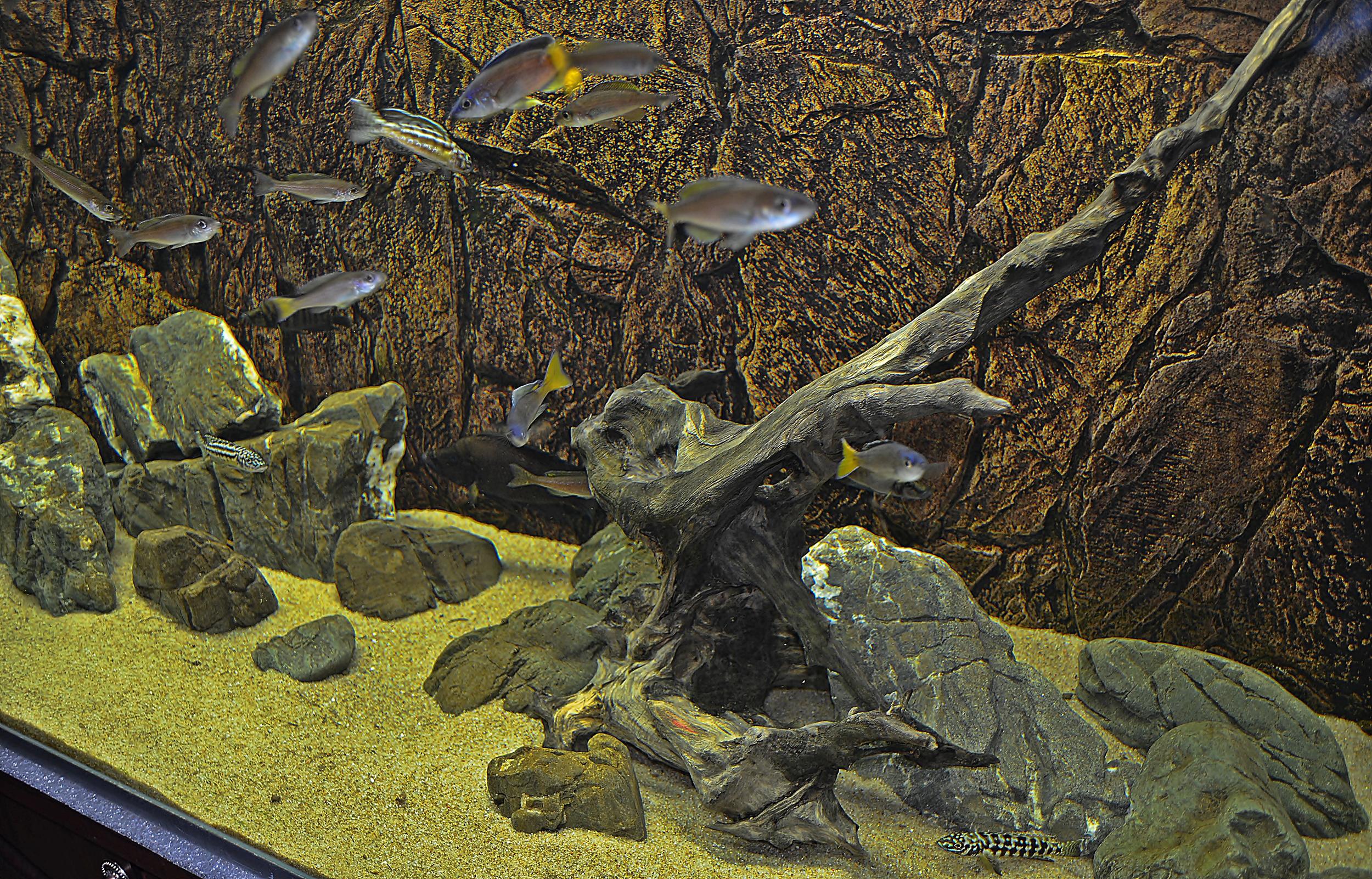 С объемным фоном, польского производства, возможно с рыбой, внешним фильтром Hagen Fluval 406, терморегулятором, тумбой за дополнительную плату, по договоренности.