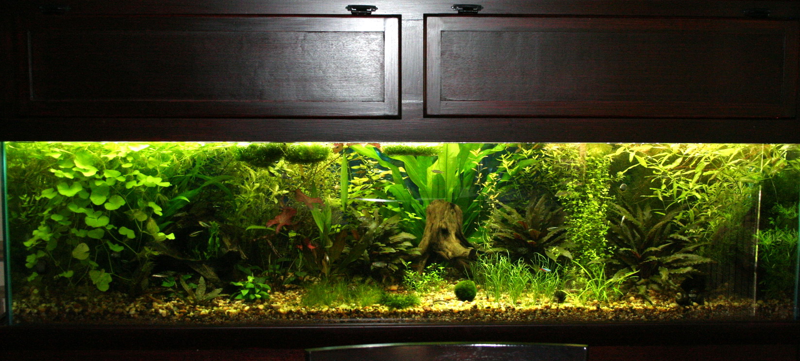 Заполнение аквариума водой и посадку растений мы проводим так же, как и любого другого аквариума. При заливки воды надо соблюдать осторожность , что бы избежать перемешивания субстрата и открытия земельной смеси.