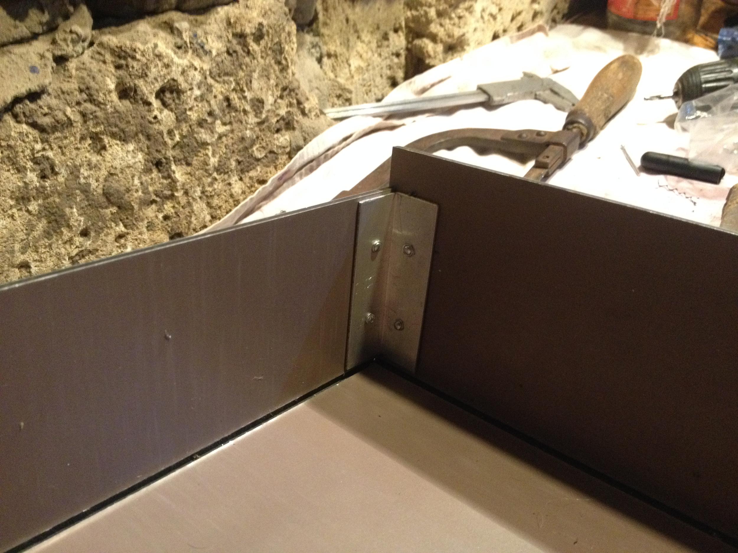 У Володимира з форуму придбав заготовку під світильник(алюмінієвий композит),пізно вечером почав робити короб під відбивачі,все розмітив як будуть стояти відбивачі і почав сверлити отвори під кутики щоб зробити короб,зєднував кутиками алюмінію на заклепки,думав на клей але заклепки надійніше тай "вдуг що" можна висверлити,зробивши короб було пізно пішов відпочивати.