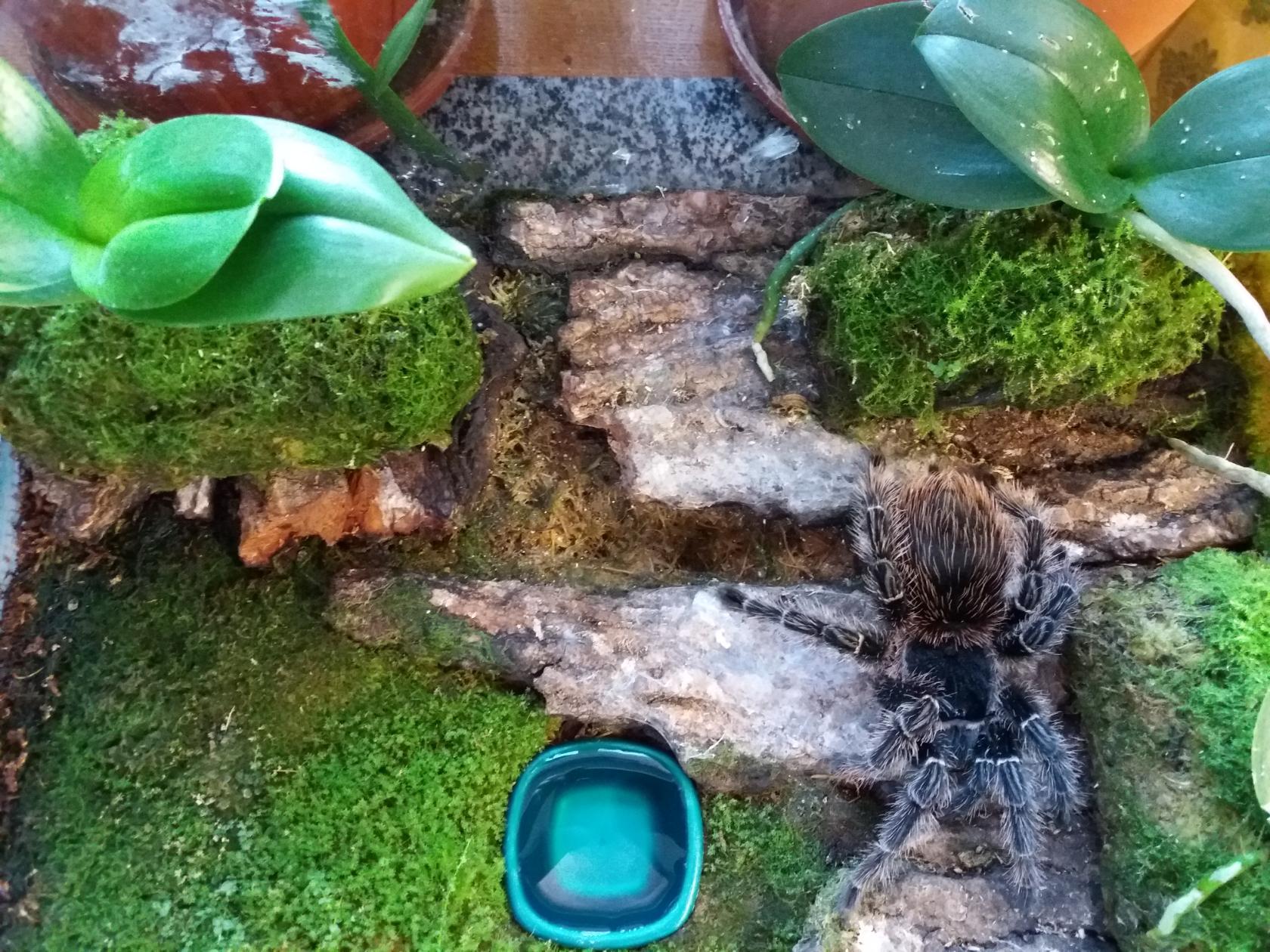 Вместо предисловия - самка Chromatopelma cyaneopubescens была неоднократно спарена с самцом и внутренний голос твердил мне, что для повышения шансов на потомство ее нужно пересадить в людский террариум, потому как ее нынешний явно тесноват.