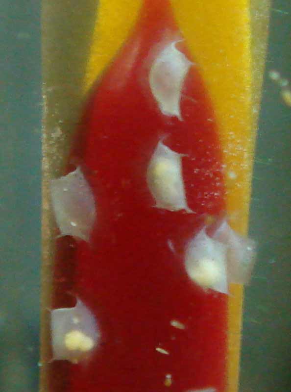Обратите внимание на икру на градуснике. Там видна пара икринок без ядра.