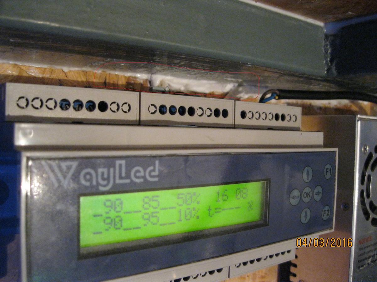 Хочу поделится одной неприятностью и на всяк случай предостеречь. Допустил я оплошность что непростительно мне. После установки контролера не принял меры о безопасности и предотвратить КЗ,когда я установил контролер то не заделал узкую щель куда входили провода с светильника , дабы по ним не дай Бог не потекла М.вода во время уборки и т.д. В планах сразу я намеривался это сделать, НО забыл,а потом если вспоминал то всё откладывал на завтра. Ну и вот 29-02-16 делал очередную генеральную уборку немного отвлекали звонки, стоял на стремянке а мокрым локтём прикоснулся к проводу первого светильника через пару минут замигал один светильник и внизу затрещало , я быстро выключил всё обесточил разобрал а там капец. Настроение было шикарное и кроме собак дома нет некого отвязаться не на кого. Созвонился 1-03-16 и отослал Виталику Pastuh1234 контролер. Виталик сказал контролеров нет пока, и плат нет, но мы поглядим, протестируем всё проверим может отремонтируем. Земляки предлагали свою помощь. и в этот же день я взял светильник лед у Александра way-x и временно поставил на риф, так как не знал на сколько останусь без основного света. 03-03-16 Виталий выслал мне отремонтированный контролер(сгорел процессор) а всё остальное целое даже программа не сбилась, повезло крупно. Очень я благодарен Виталику Pastuh1234 и его коллегам за быстрый ремонт.Отправка туда сюда в общем три дня и всё готово . Сегодня в обед получил контролер немного изменил в креплении к боковой стенке тумбы и в расположении проводов и за тумбой и в тумбе ну и естественно промазал всё герметиком два раза.(что надо было сделать это ещё летом) Фото на обзор.
