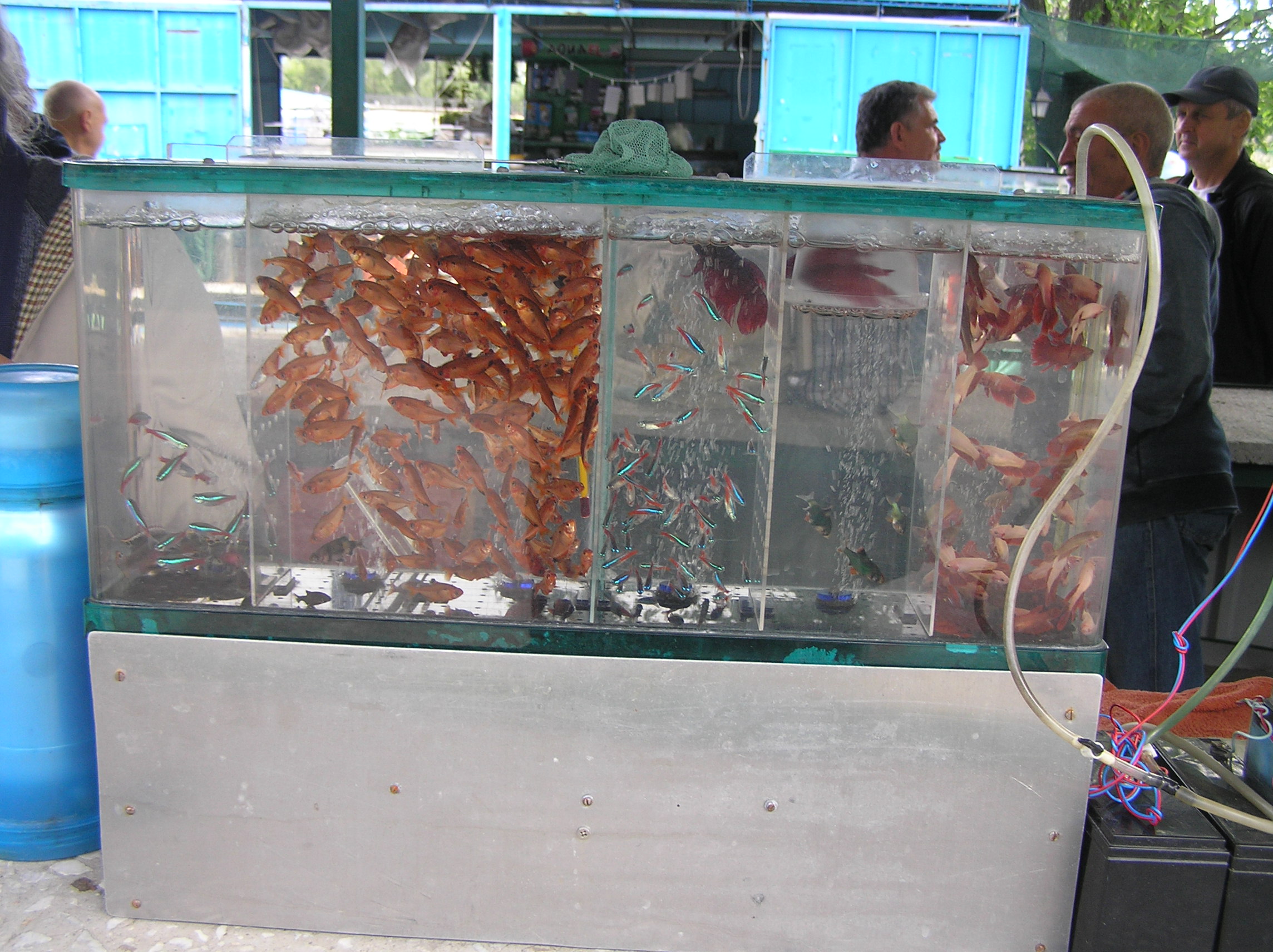 Побывал сегодня на Птич рынке.Если вы думаете,что напишу,мол, негде было протолкнуться,то это не так.Продавцов до 30%.Покупатели тоже иногда,засмотревшись на рыбок,наступали на ноги.Но видать, наступил летний сезон.Это, когда жарко и рыба резко дешевеет.Вот тут раздолье для любителей купить недорого!Продавцы просто сдаются в плен покупателям.Что ж,иначе кормить все лето?