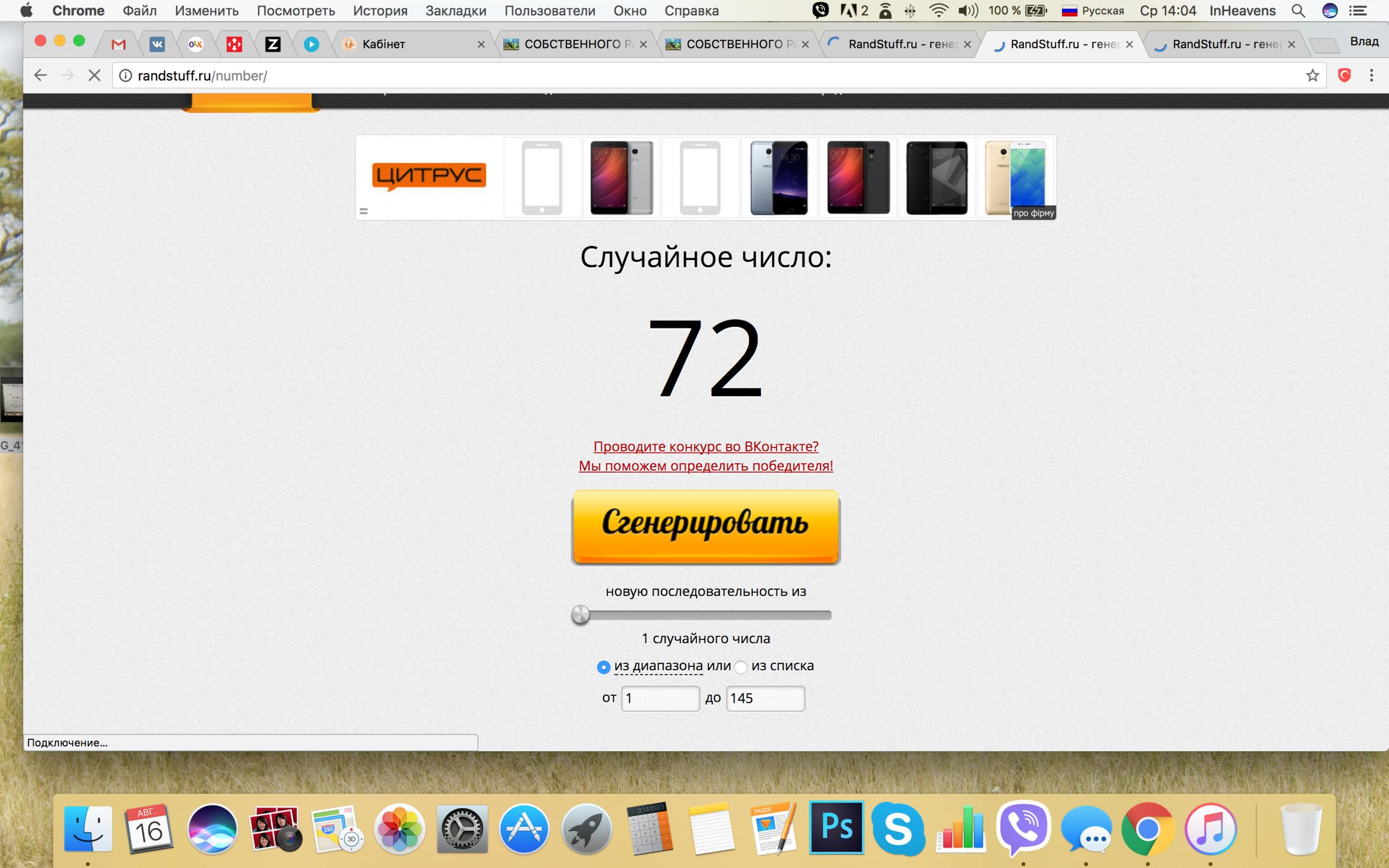 Победитель будет выбран случайным образом с помощью сайта http://randstuff.ru/number/
