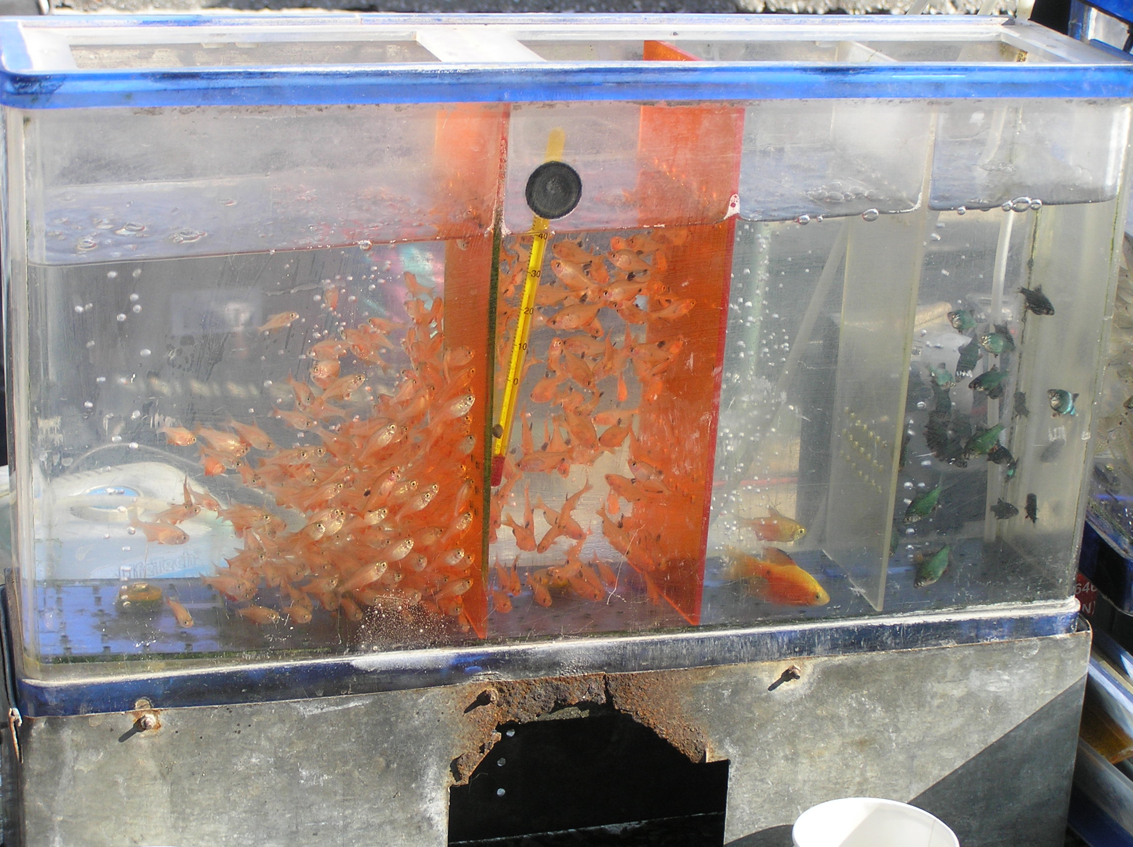 ...Уверенно могу сказать,видел своими глазами,что в 1947-1948гг на Благовещенском рынке торговали скаляркой,барбусом,петушками...Хоть видов было и немного,но Всего и сейчас не перечислю.И у людей оптимизма было поболее.