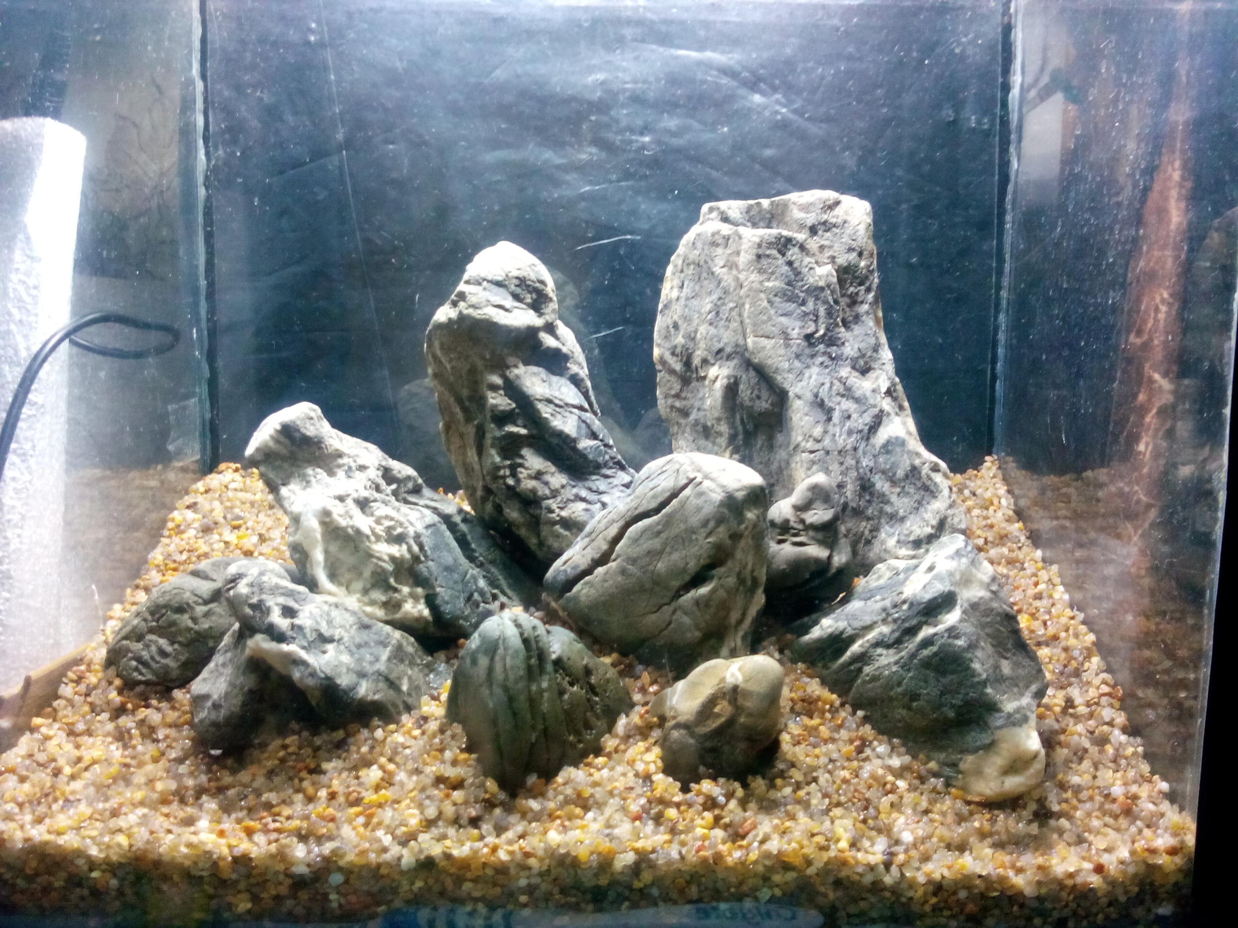у вас реактор на фото его размеры?. камни нейтральные? на аквариум -размер дна -- 75см -длинна. 35-ширина. высота 40см интересует композиция с небольших камней они будут присыпаны грунтом толщина грутна будет 7-8см Грунт будет МАНАДО ,что бы по цвету подходили.