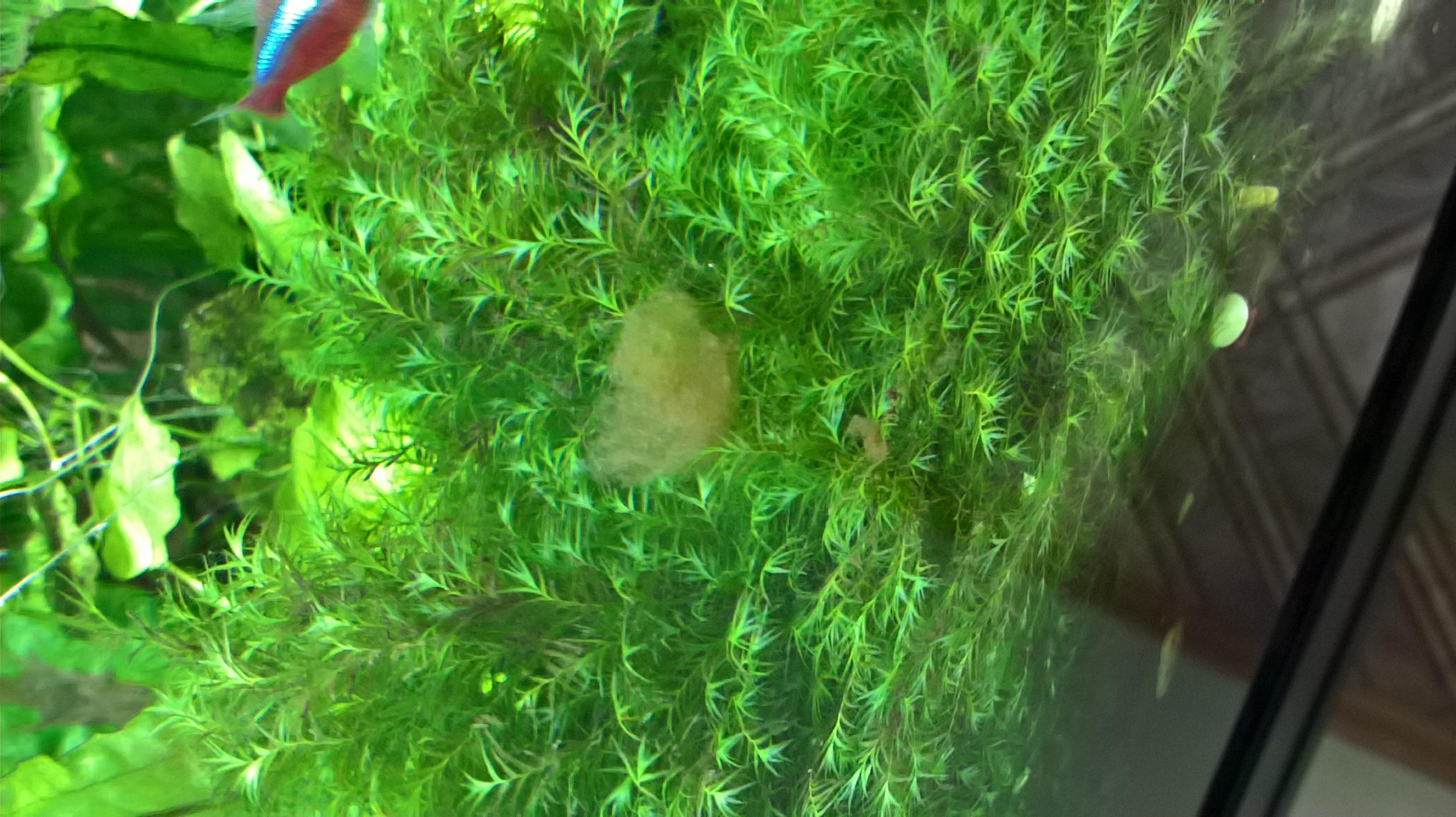 Объем и габариты аквариума (Д*Ш*В): 50л Когда запущен аквариум (дата): октябрь 2016 Параметры воды в аквариуме (аммиак, нитрит, нитрат - обязательны): Аммиак, нитрит нули, нитрат колеблется 5-15, фосфат колеблется 0,1-0,5 Рыбы в аквариуме (размер, вид, количество): красный неон 25 шт, коридорас джули 4 шт. Растения в аквариуме (виды, плотность посадки): Разные, плотно. Внесение удобрений и CO2: моносоставы нитрата, фосфата, калия по мере необходимости, микро с железом раз в неделю. За удобрения отвечаю- от ДЕПСа Грунт (и подложка если присутствует): АДА "амазония". Больной вопрос. Запускался аквариум до меня, полное ощущение что грунт был переморожен, пылит как последняя сволочь. Декорации в аквариуме (материал): Несколько кусков лавы как субстрат для мхов, анубиасов и т.д. Оборудование (фильтры, компрессор, нагреватель и т.д.): внешний фильтр флюваль 106 А202, грелка 75 вт Стандартная температура: 25 Подмена воды (частота и объем): Один раз в неделю 30% водопровод Освещение (тип ламп, спектр, количество, попадает ли свет из окна): PteroRay 50 см, 6500К 2550 лм= 2500 лм на дне. 8 часов. Кормление (чем кормите, как часто, как много): Хлопья "новобел" от ЖБЛ Изменения, предшествующие появившейся проблеме: В июле аквариум стоял без света. Растения выжили нормално, после включения света пару недель повоевал с обрастаниями на стеклах, немного со спирогирой. Осталось удавить остатки одогониума. Описание вашей проблемы: Сегодня меня встретил сюрприз. Такая вот фигня как на фото.