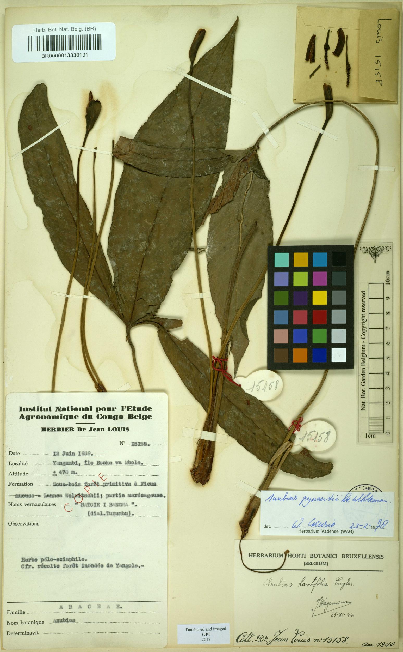 Но согласно той же Ревизии рода Анубиас (A Revision of Anubias (Schott), W. Crusio) виды определяются как раз по визуальной оценке, есть такой Ключ к определению видов, где в примечаниях написано "Для корректного определения необходимы зрелые цветущие образцы." Согласно ключа: