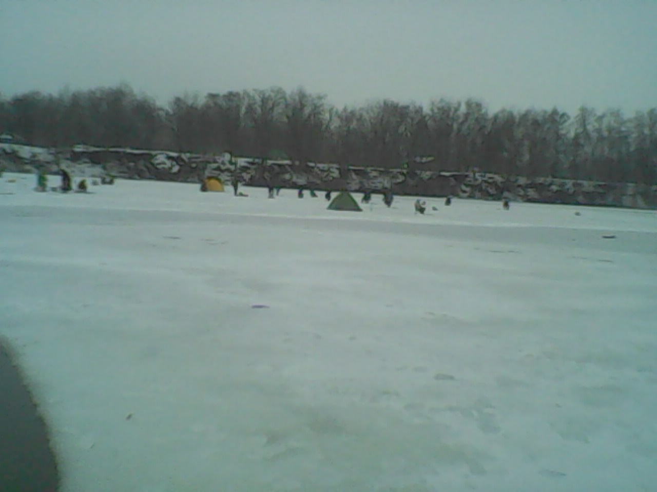 ...Ловил на купальне.Так вот, что привлекло моего друга.Здесь,на пространстве 200х200м сидело на льду до 50 рыбаков.Будний день.Наверное крупная рыба тут ловится и много...  Удивили и другое.Они часто к нам подбегали и спрашивали,что мы ловим.Наверное от безрыбья из-за отсутствия клева хотели хоть циклопа на крючек поймать?