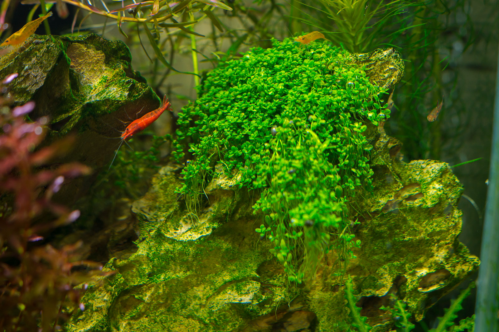 GDA поселившиеся на камнях отступать не собираются. Лишь старательные отоцинклюсы негросы, физы и креветки, оставляют в них редкие проплешины.