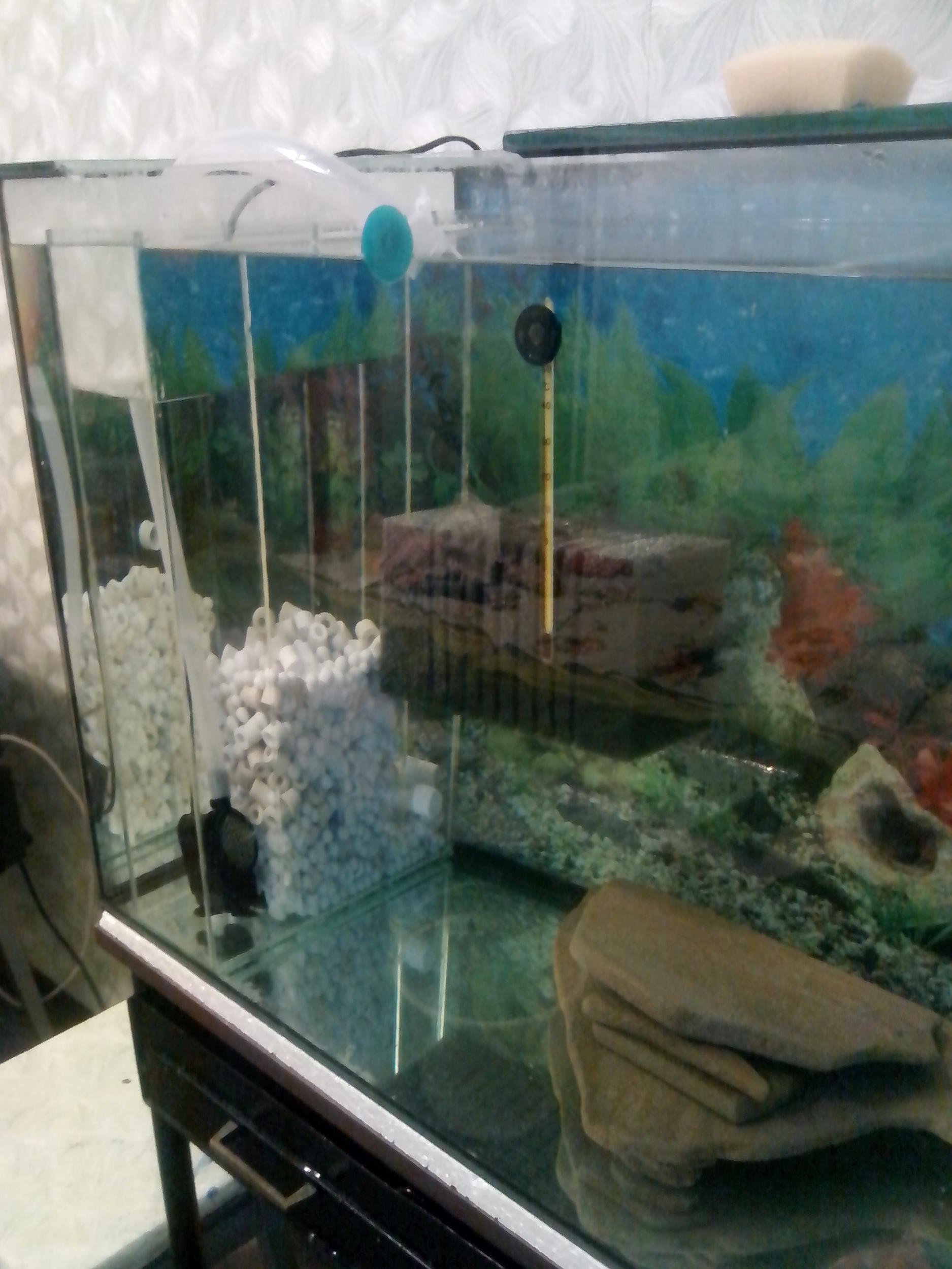 Рассчитывался на две губки и помпу около 1000 л/ч, по факту сейчас стоит помпа производительностью 500 л/ч и справляется одна мочалка мелко пористая.