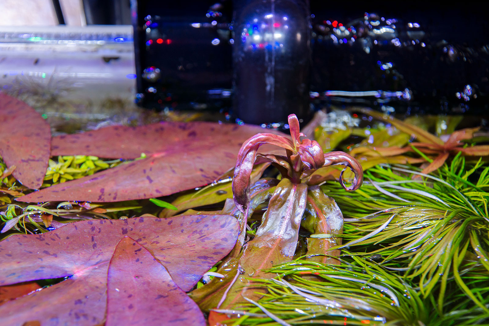 Аквариум, в целом, уже хорошенько зарос. Поэтому задумываюсь над выведением из него "лишних" растений. Под "лишними" подразумеваю те растения, которые показали хороший рост как на нештатной схеме внесения питательных веществ, так и на "Комплексе №2" при том, что эти же растения занимают много пространства в аквариуме. Пока думаю убрать: