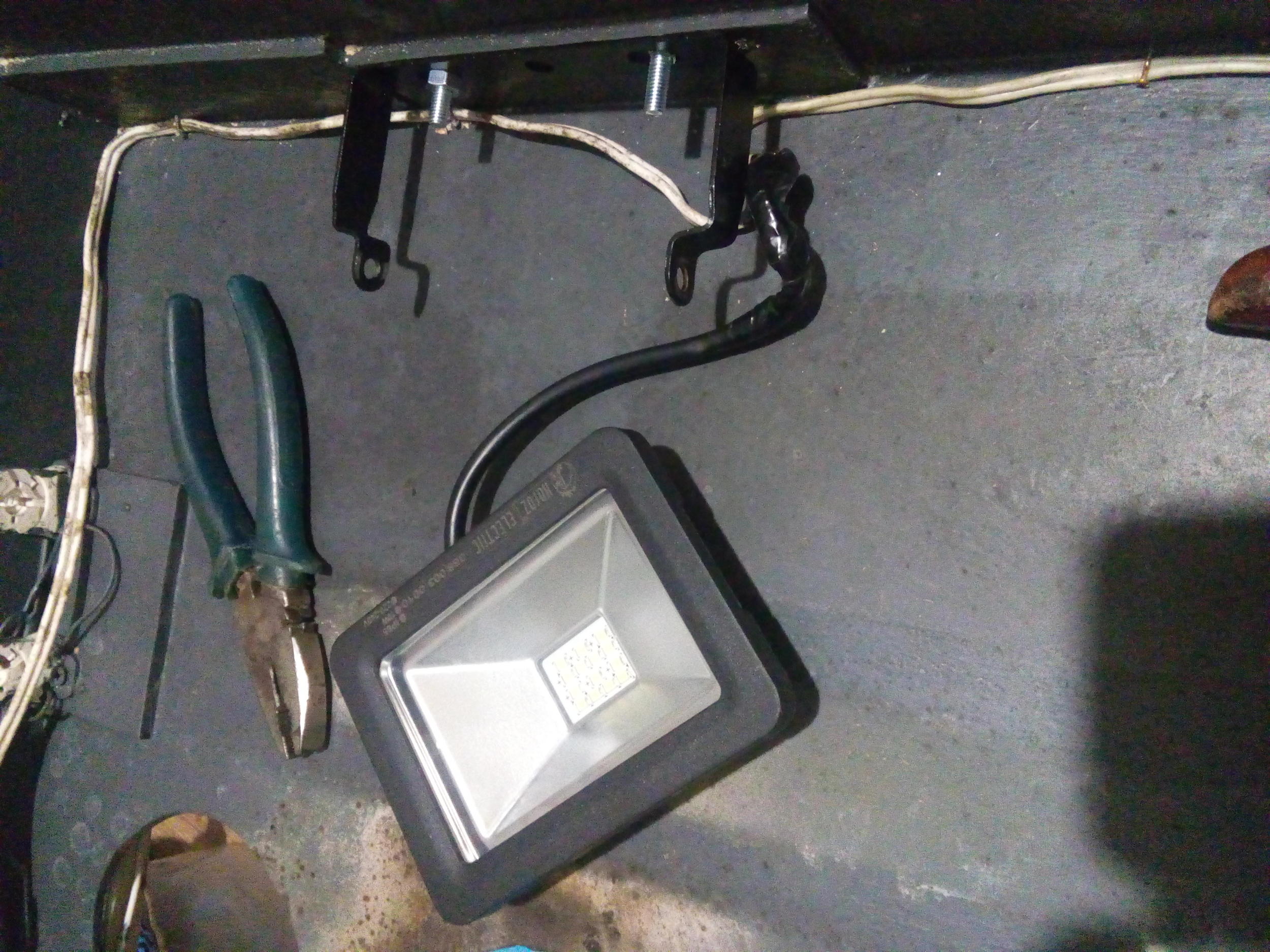 Вчера занимался переделкой света. Вместо т8 ламп поставил три светодиодных прожектора по 10W.