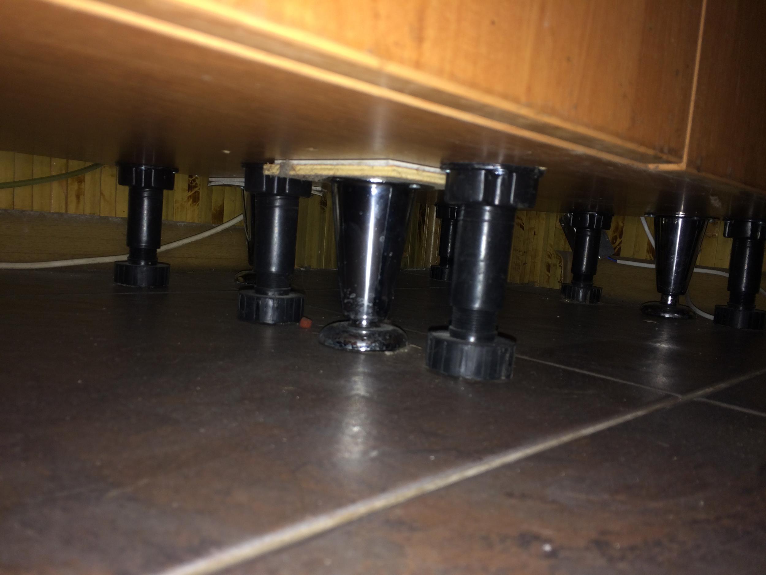 Попробовал установить между ножками и тумбой лист дсп, как на