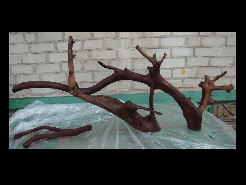 4. За день до извлечения вымол с ванны желтый налет (мыл галой) напором воды промыл коряжки и опять поставил на ночь кипятить, на следующий день, когда, я достал коряжки, вода была бледно, бледно коричневой. Меня это сильно не испугало, и я приступил к работе, как видно на фото маленькая коржка очень подошла к продолжению большой, закрепил при помощи саморезов (я использовал белые).