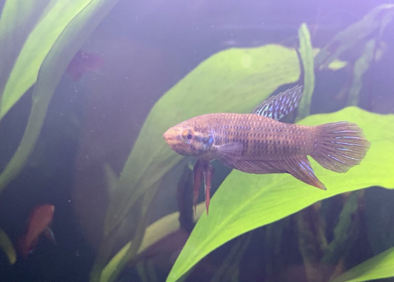 Параметры воды у них рН 7 - 7.5, КН 5, GH 11. В аквариуме листья индийского миндаля и приглушенное освещение. С момента заселения петушков в этот аквариум прошло две недели.