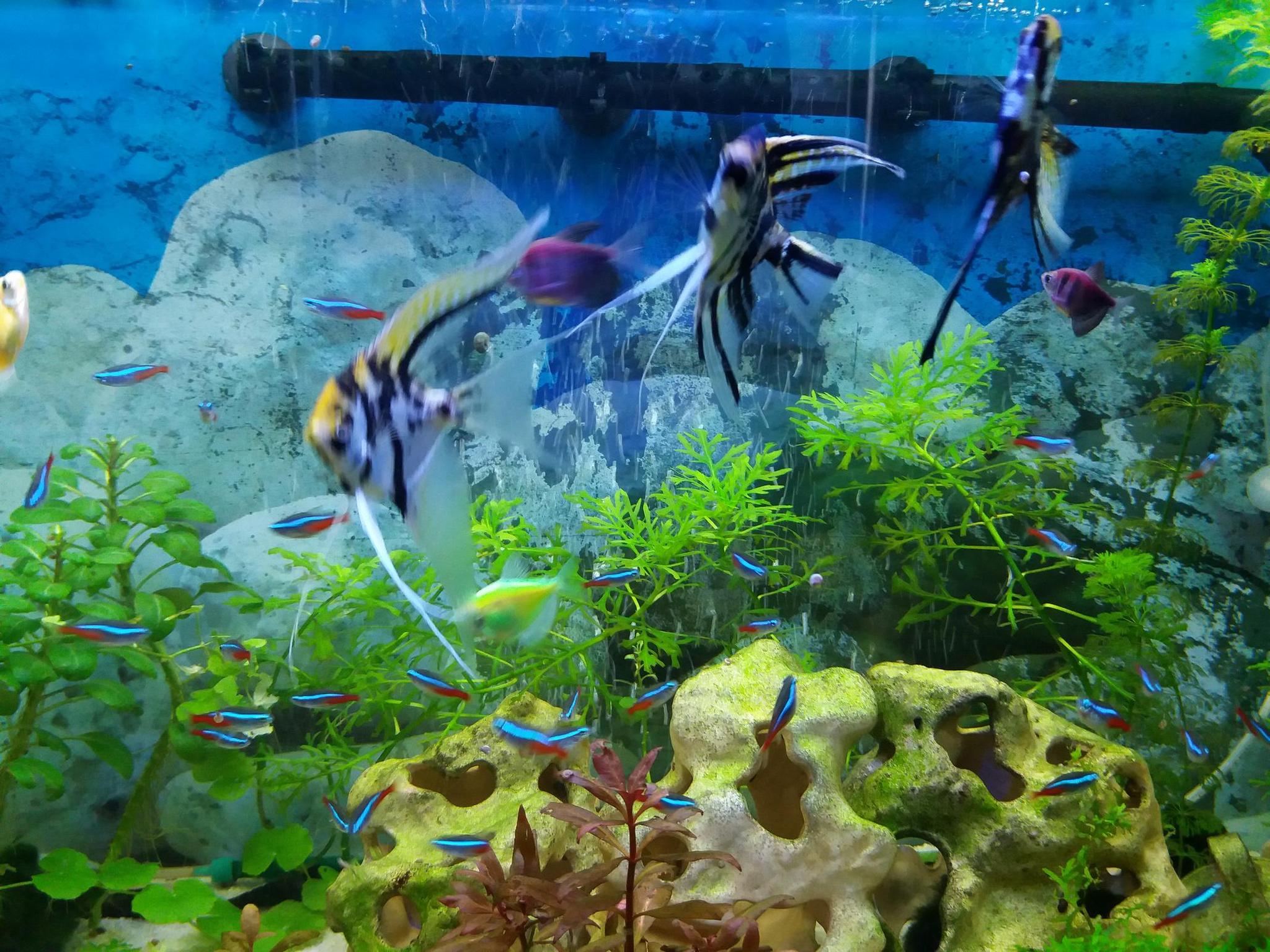 Рыбы: неоны обычные - десятка два, точно не посчитать.