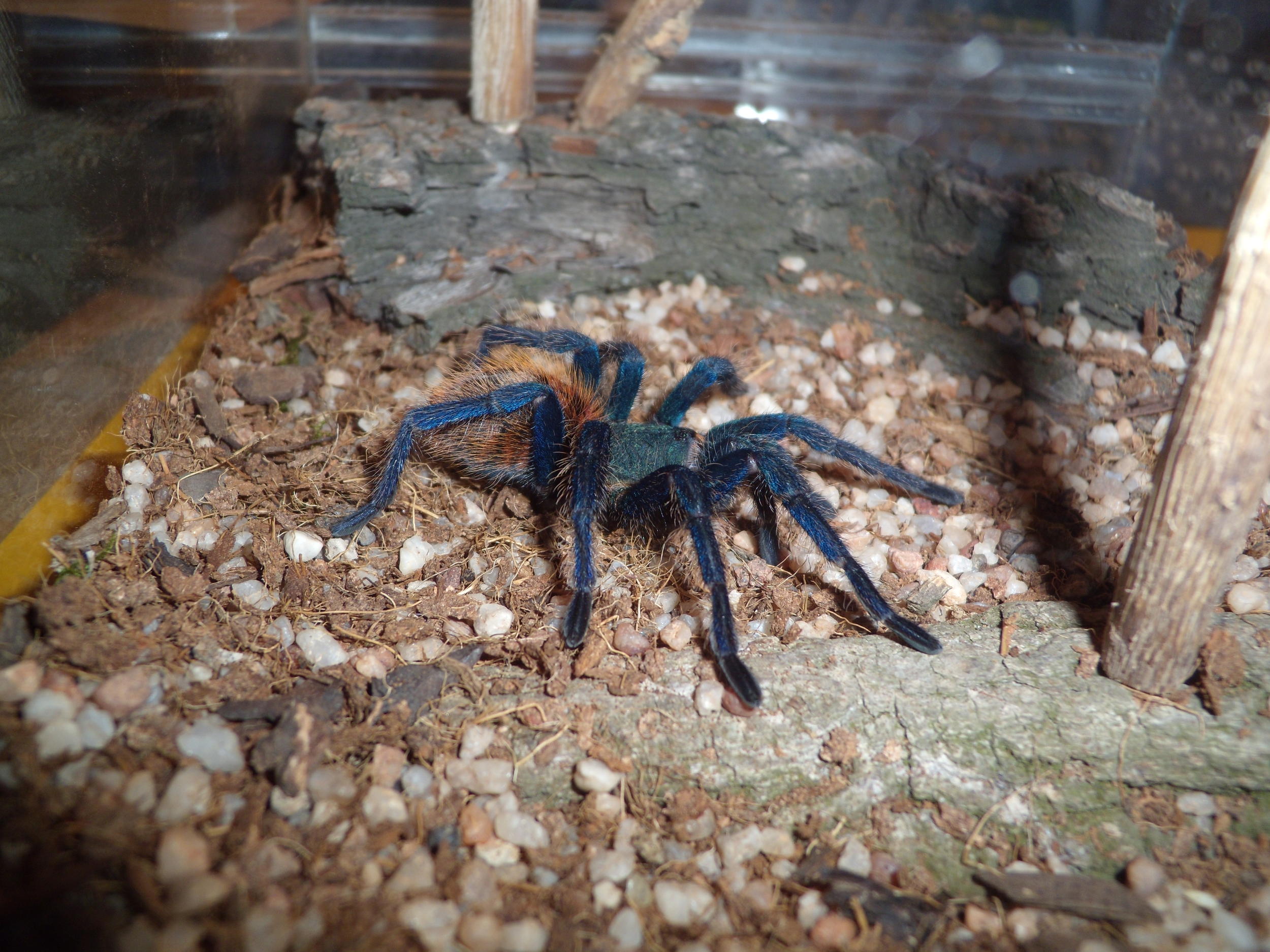 Chromatopelma cyaneopubescens. Единственный представитель своего рода. Этот удивительный птицеед обитает в северной Венесуэле. Является одним из самых красочных птицеедов.Он обитает вдоль реки Paraguara , располагаясь в кустарниках и прибрежном лесу. Местность полупустынная.