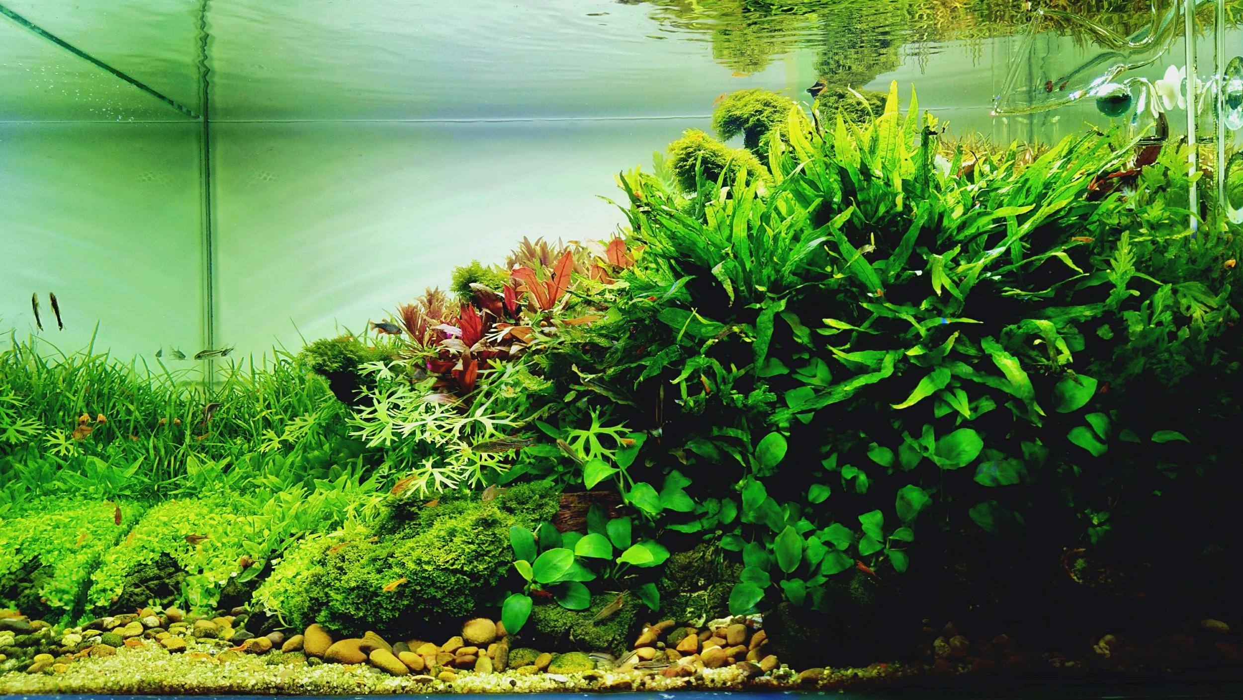 Монте карло після останньої стрижки погано відходить. Вже майже місяць минув, а газон в норму так і не прийшов. Листочки якісь дрібні і бліді. І щось навіть на бороду чи в'єтнамку схоже на деяких листках. Зовсім трохи, але це трошки насторожує. Ще причина може в тому, що монте карло наріс досить товстим шаром. Я його жодного разу не пересаджував за цілий рік, лише стриг. Лімнофіла ароматіка міні теж поганенько відходить, нове листя бліде, старе листя чомусь розчиняється у воді. Решта рослин в ідеальному стані. Подивлюсь по стану рослин з новим добривом кілька днів і буду робити масштабну стрижку. Монте карло вирву весь, як і решту грунтопокривних рослин і посаджу заново. Та і всі інші рослини буду зрізати повністю і пересаджувати. Папороть дуже велика стала і до переднього скла дістає. Короче, майже перезапуск, уявляю яка муть у воді буде.