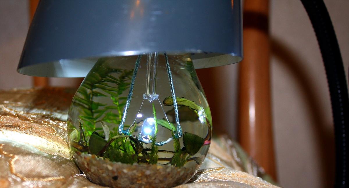 Вместо нити накаливания- СД, из живности- дафнии. И честно отработала несколько месяцев ночником, пока кошка не пробежала, хвостиком махнула... В общем, все как в сказке))))