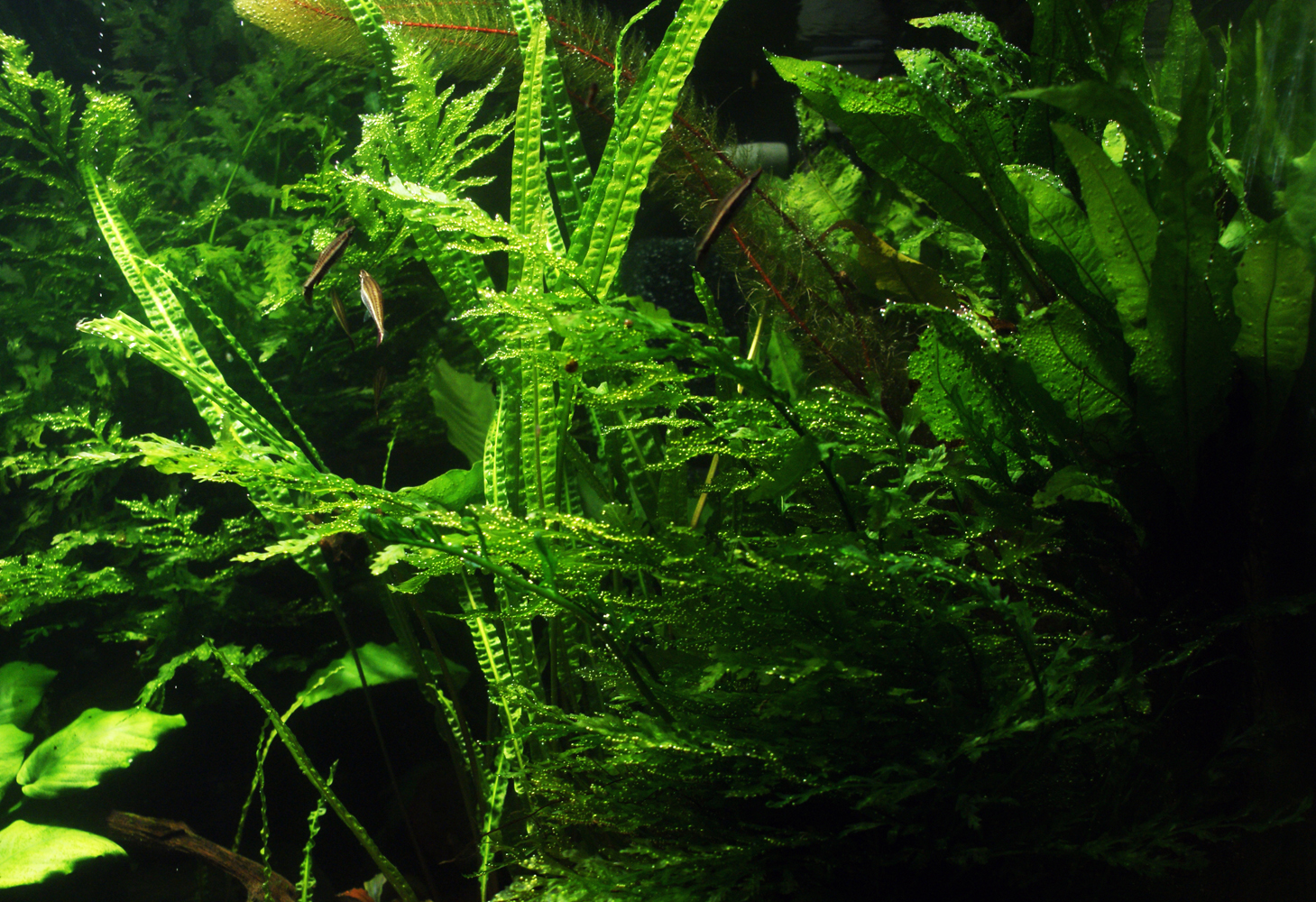 Решил и я кое-что показать. Мой любимый Болбитис, цветок Анубиса бартери вар. каладифолия, перистолистник красностебельный, цветок криптокорины нури вар. грин. Среди листов болбитиса: криптокорины балансе грин и балансе ред.