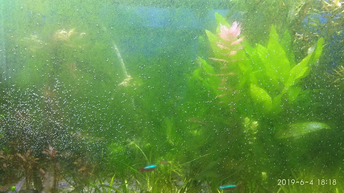 В какой-то момент заметил что зелень со стенок начала перебираться на растения. Я так понимаю, что где-то пошел перекос - УДО, свет или СО2 и возможно не один...