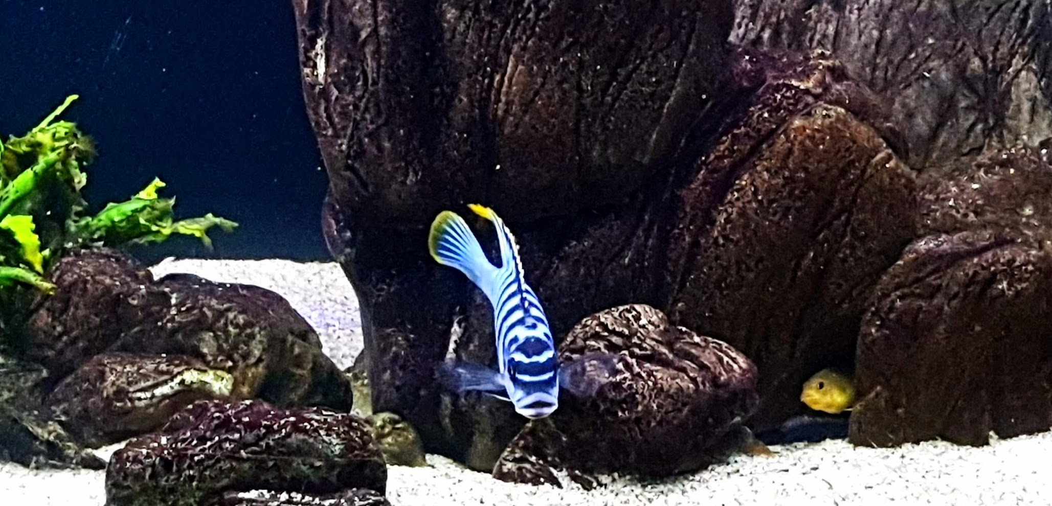 И даже Cynotilapia Aurifrons Nkhata Bay окраса которого я так долго жду пару раз полыхнул цветом, но испугавшись содеянного, тут же потемнел, я даже не успел сфоткать