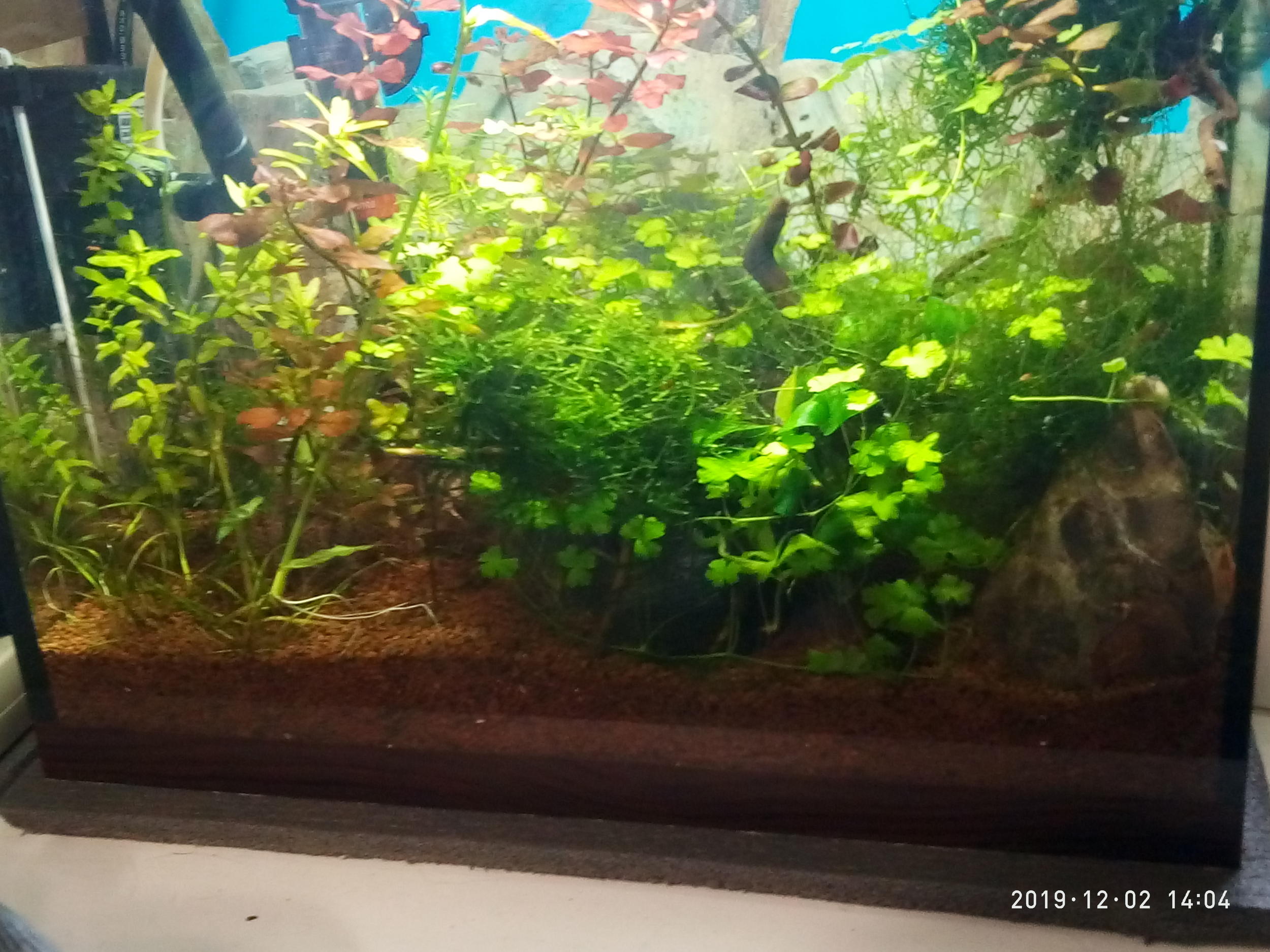 Теперь о хорошем. Все растения за неделю значительно прибавили а массе(росте). Особенно Эхинодорусы(под них таблетки с железом положенны были.) И вся Людвигия выросла в два раза больше. Лимонник что в ширь,что в рост добавил. Стаурогин и Гигрофила тоже прибавили особенно во внешнем виде. Ситняг вылез из воды местами на 10 см. Тигровая Нимфея прибавила в листьях. А Нимфоидес Флиппер это просто демографический взрыв. В общем прекрасное удо. Буду использовать. Тем более оно добавляется раз в неделю если без со2.