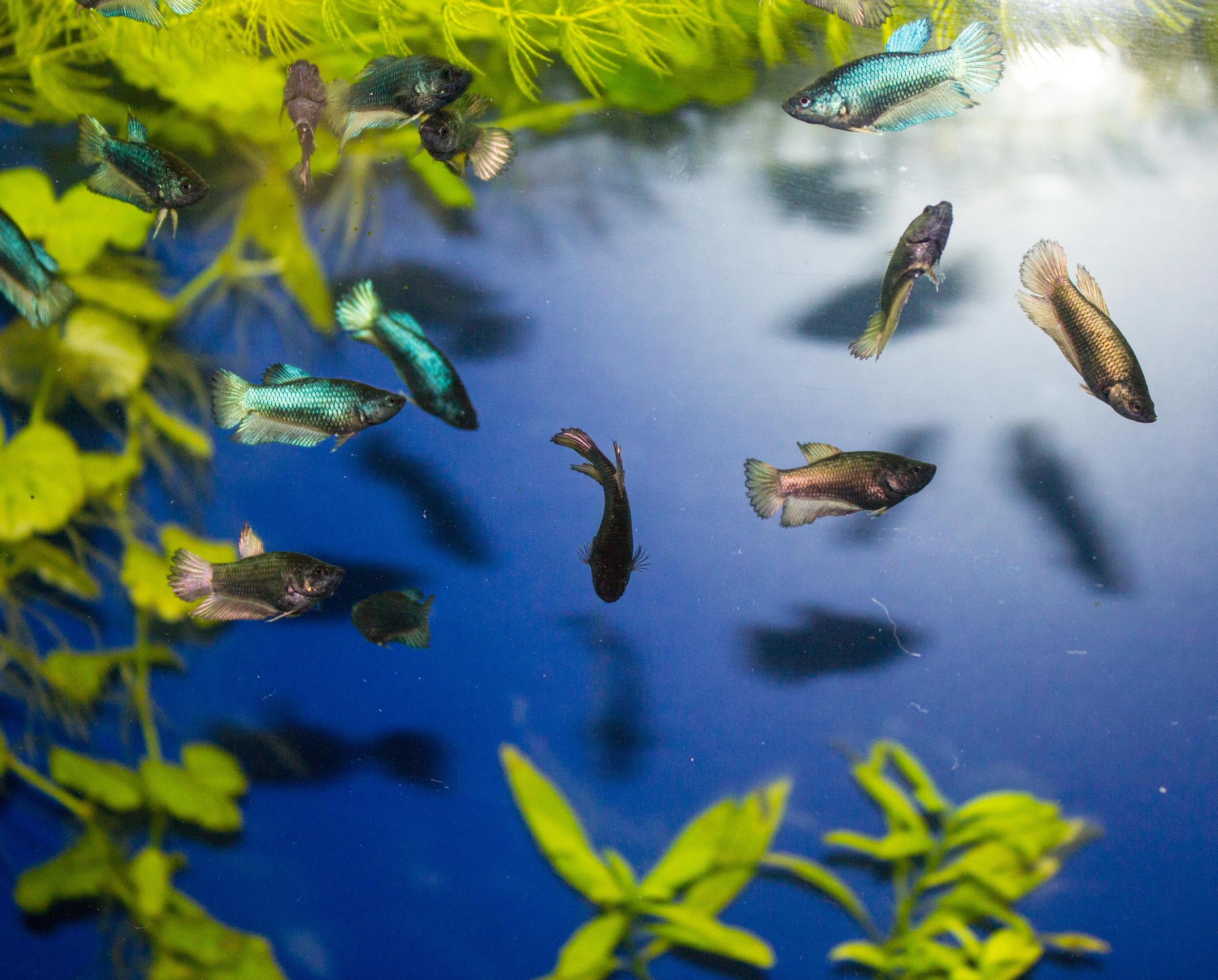 размеры 30*20*25 см, слой воды 15 см, температура 28 град., растения, коряжка, гнездо под листом Ketapang