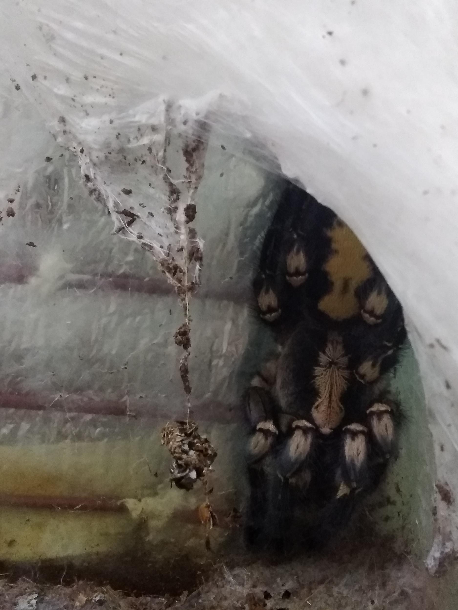 То за что я люблю пец, это искра интеллекта, на фото пример того что она подвешивает остатки блаптики на паутине, что бы не разводилась плесень и клещи. Ну просто мимими^^
