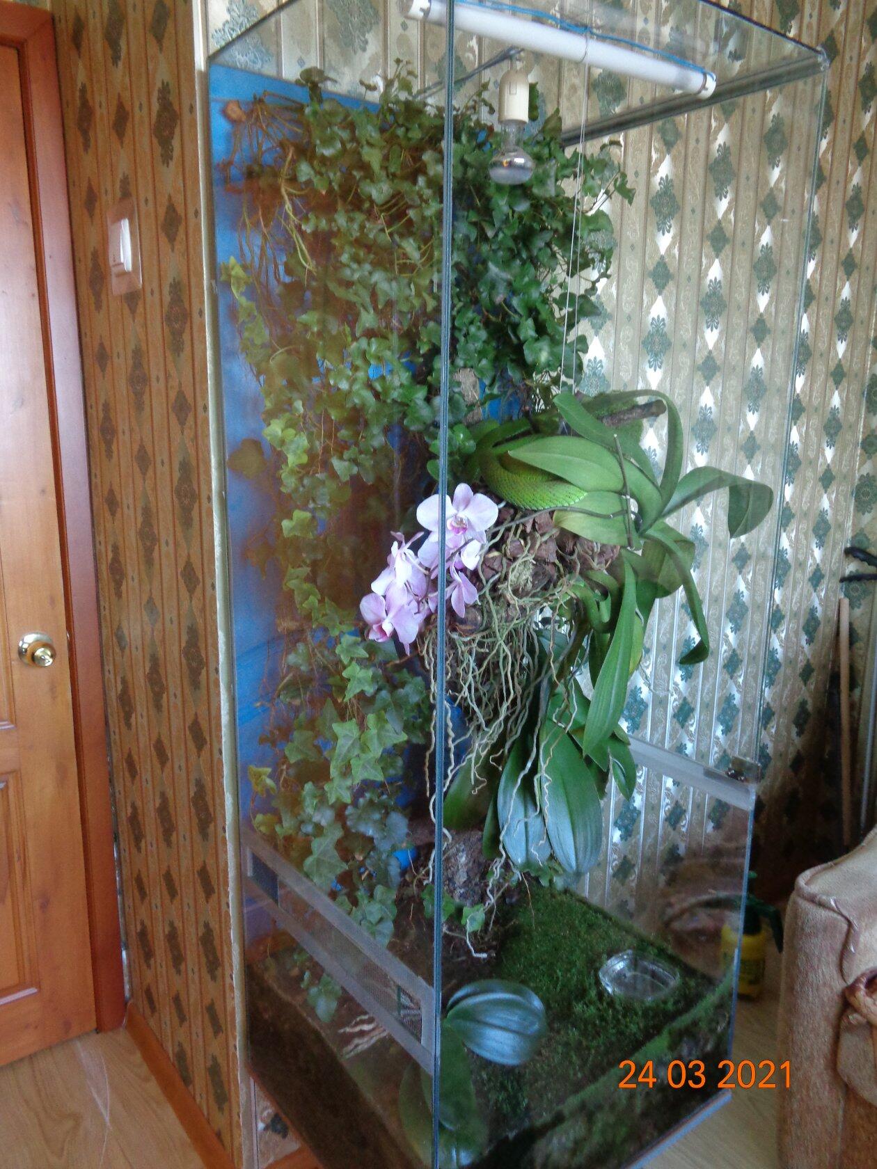 для этой змеи там вентиляция сделана с излишком. но так и задумывалось . управлять вентиляцией очень просто в щель где сетка вставляется полоска стекла нужной длинны и все . можно подобрать любую какая нужна.