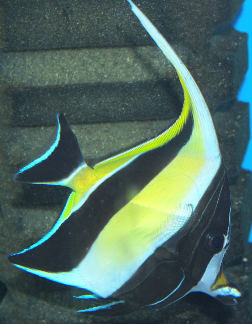 Называется рыба Oxymonacanthus longirostris Длиннорылый единорог. Счетается одной из самых ярких рыб-напильников)). Питаются полипами Акропор, и приучить к искуственным кормам проблемно.