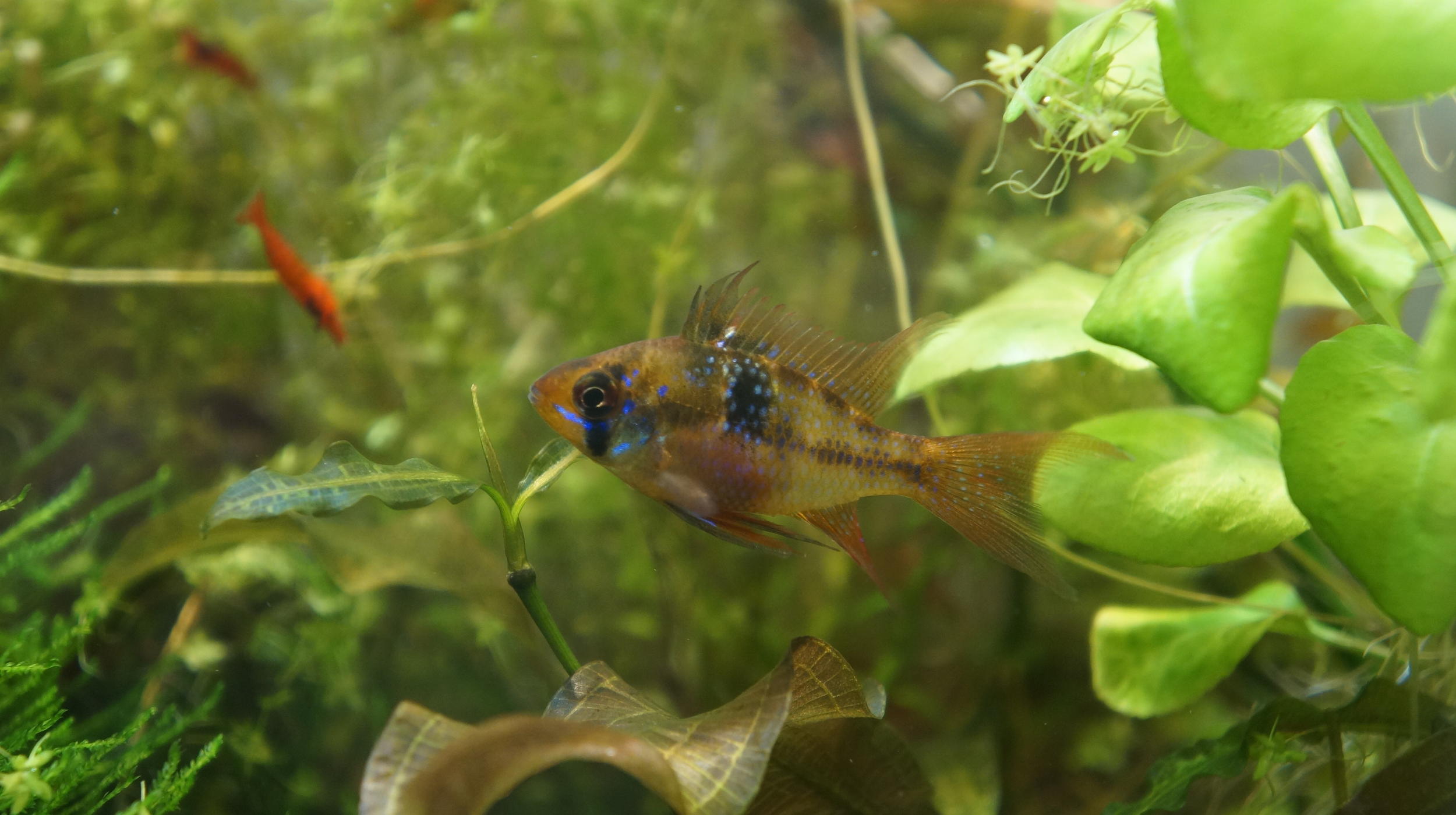 Аквариум 75 литров. 4 месяца назад купил 2 апистограммы в магазине. Изначально пришлось их рассадить по разным аквариумам из за того, что одна гоняла другую все время. Спустя пару месяцев я их поселил вместе и все было ок. Последний месяц более крупная рыба снова начала приследовать более мелкую. Последние 2 недели я почти не видел меньшую - пряталась все время. Сегодня при кормежке рассмотрел её и расстроился. Окрас побледнел, какой то коричневый оттенок. Что то явно не так.