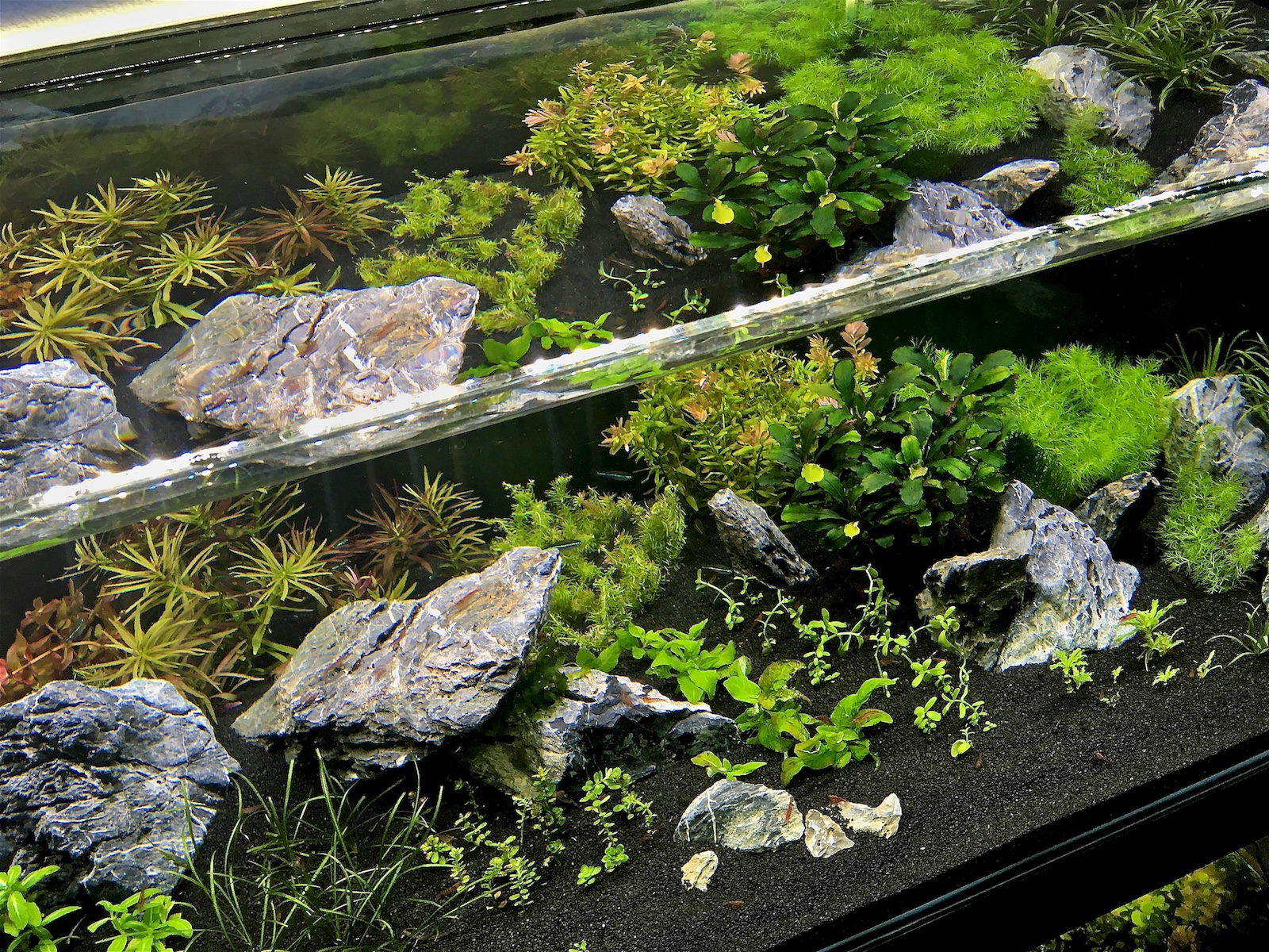 Там как бы одна половина аквариума больше заросла так как большую прополку делал за несколько проходов. Начинал с одной стороны и постепенно пропалывал и засаживал. Кое что оставалось на месте, а что то пересаживал заново или в другие места. Когда новички прорастают и дают корни пропалывал следующую часть. Так я пробовал минимизировать всплеск водорослей, когда например все активно растущие растения удалены. Вот таким методом я это делал постепенно, без резких изменений в бионагрузке, изменении света и подачи удобрений (у меня автоматический дозатор, не хотелось менять настройки).