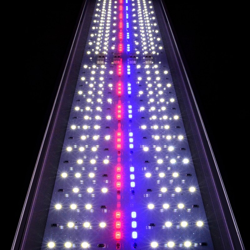 ♦ Завдяки наявності двох білих каналів, можна моделювати світло в акваріумі, посилюючи чи послаблюючи освітленість передньої або задньої частини акваріума, тим самим досягати максимального ефекту для рослин переднього або заднього планів.