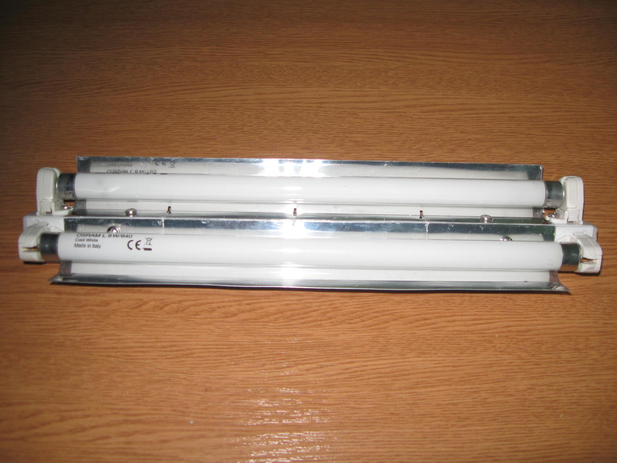 Электронный балласт взял от перегоревшей энергосберегайки(сама лампа сгорела,а электроника осталась целой)Планировалось две лампы по 8 Вт,значит балласт надо подобрать порядка 16 Вт,нашлось только 15 Вт,но это подойдет