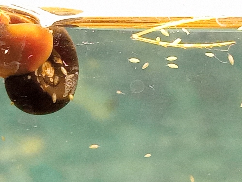 Рассудил так, больших креветок не сожрут, ибо сами меньше креветки, а если какую маленькую сожрут, да и хрен то с ним,ещё наплодятся....Интересно было,что с остракодами произойдёт...ещё и нематода плавала, короче стол от еды ломился , большой пир ждал мальков..