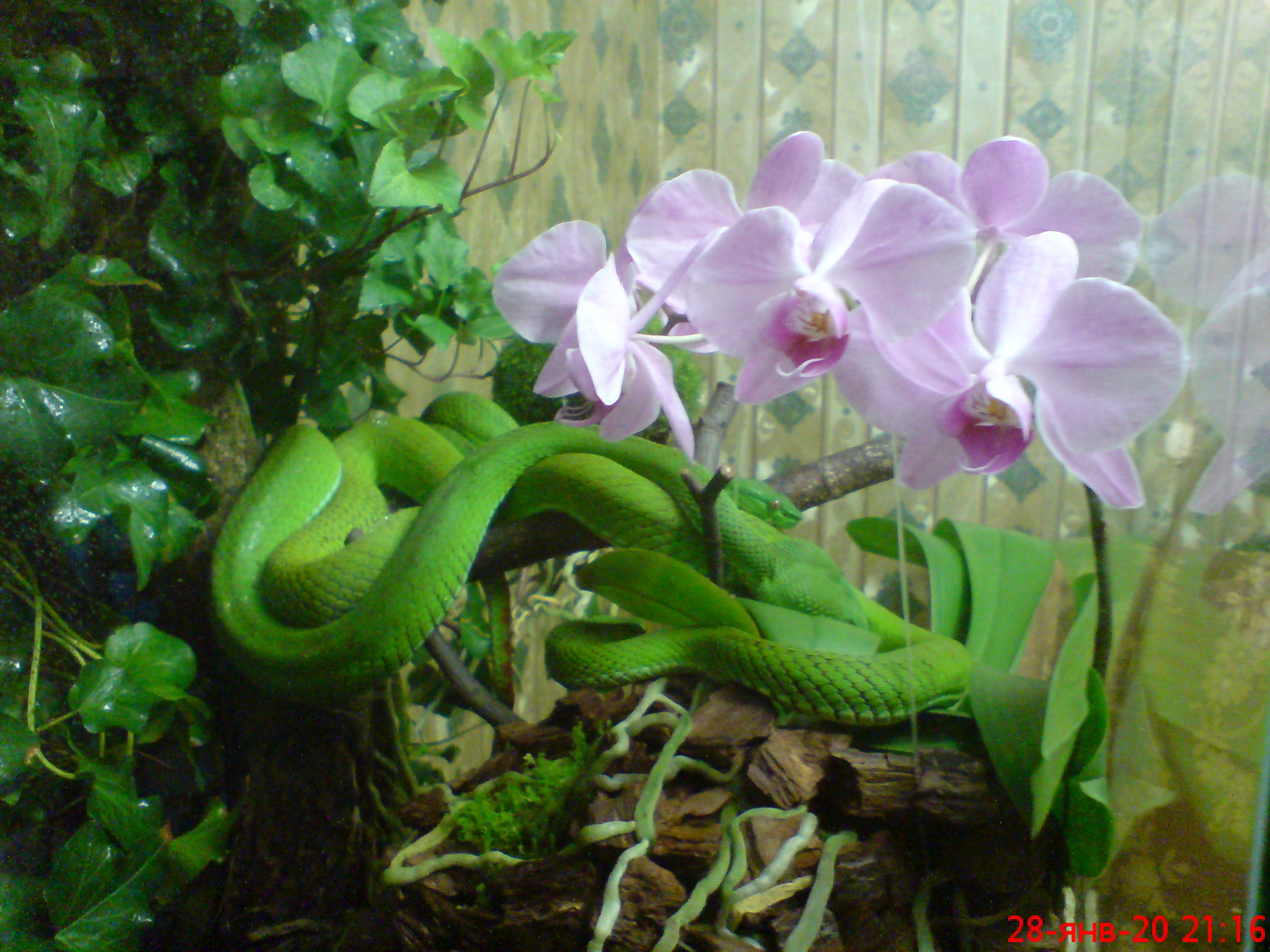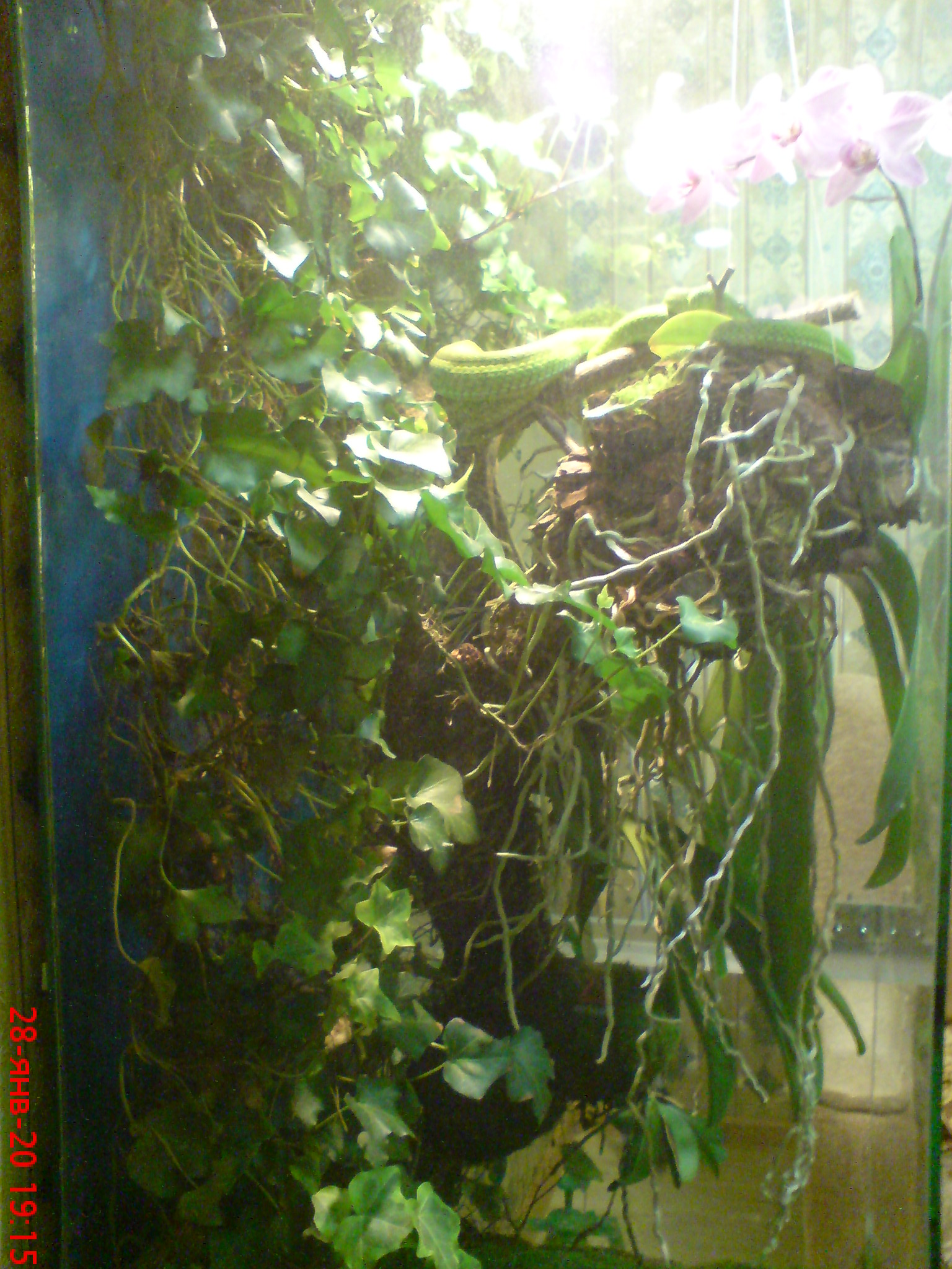 влажность поддерживается за счет опрыскивания дистиллированной водой дважды в день в 12 и 21 час. в 12 часов опрыскиваю и змей вечером только террариум. влажность находится на уровне 75-90%.
