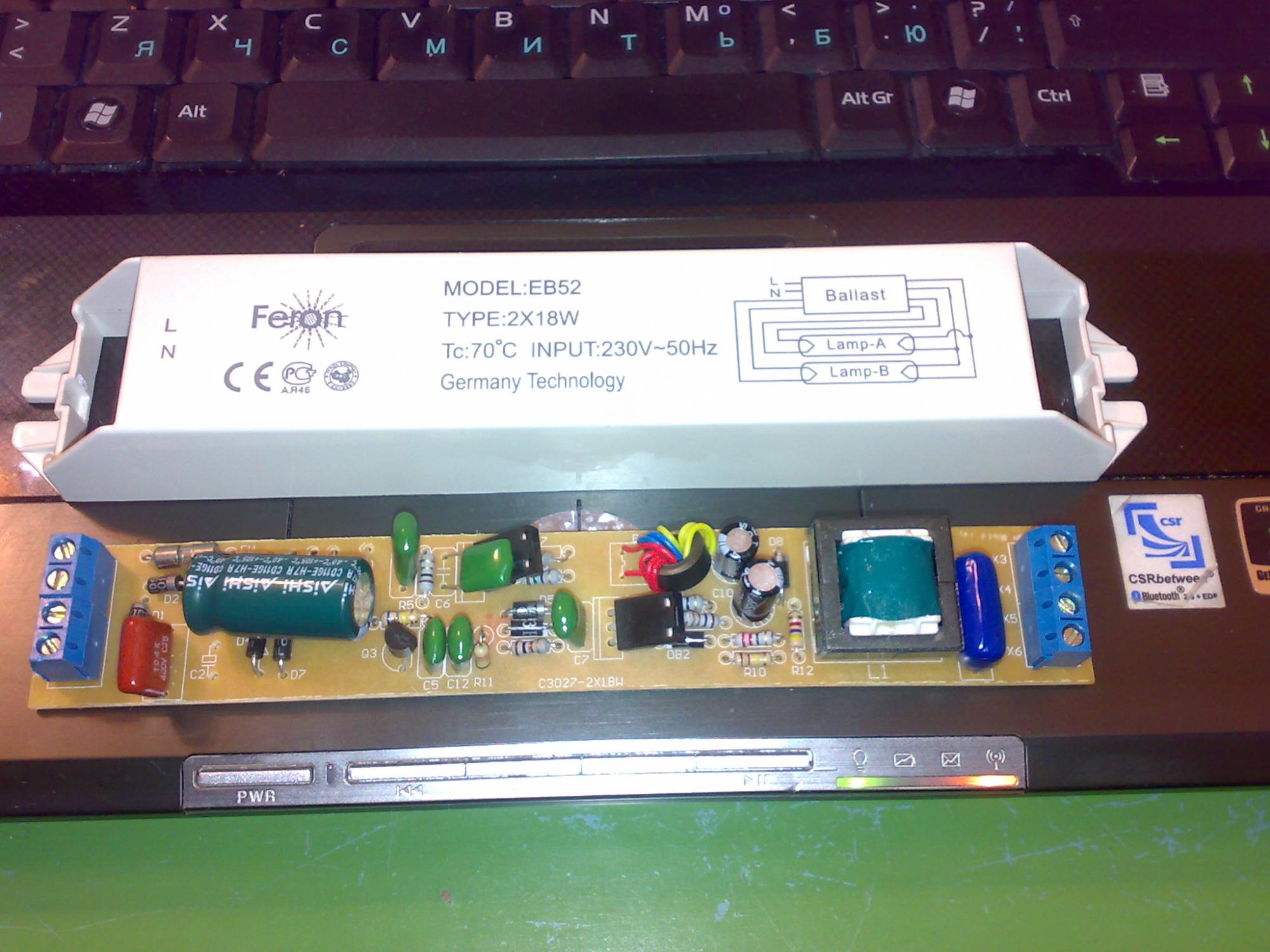 Долго пришлось помучиться с балластом 2*18 Вт. Но я его таки взломал. Правда, внешний вид немного подпортился.