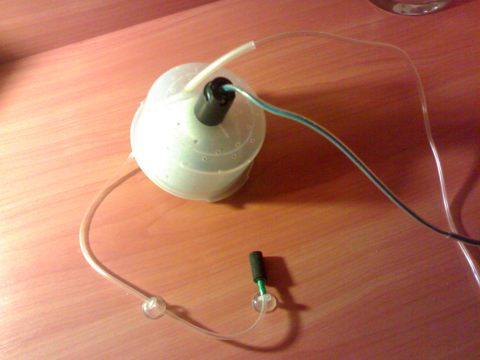 Верхняя часть крышки в виде патрона с торчащими проводами смотрелась не очень, поэтому была докуплена маленькая лейка такого же цвета, приклеена суперклеем на контейнер – патрон, провод, трубка аэрации были укреплены и закрыты.
