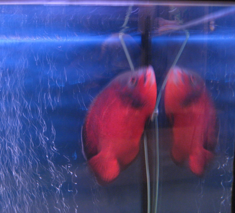 Стараясь быть максимально обьективным скажу, что красивее астров в живую я не видел, хотя бывал на разводнях и т.д. Это касается как анатомии (шикарно сложены), так и цвета. Цвет усиливается лампами аква-гло, но цвет у них именно такой, глубокий, не оранжевый, а ближе к малиновому. Возраст около 2-х лет, размер ок 28см.