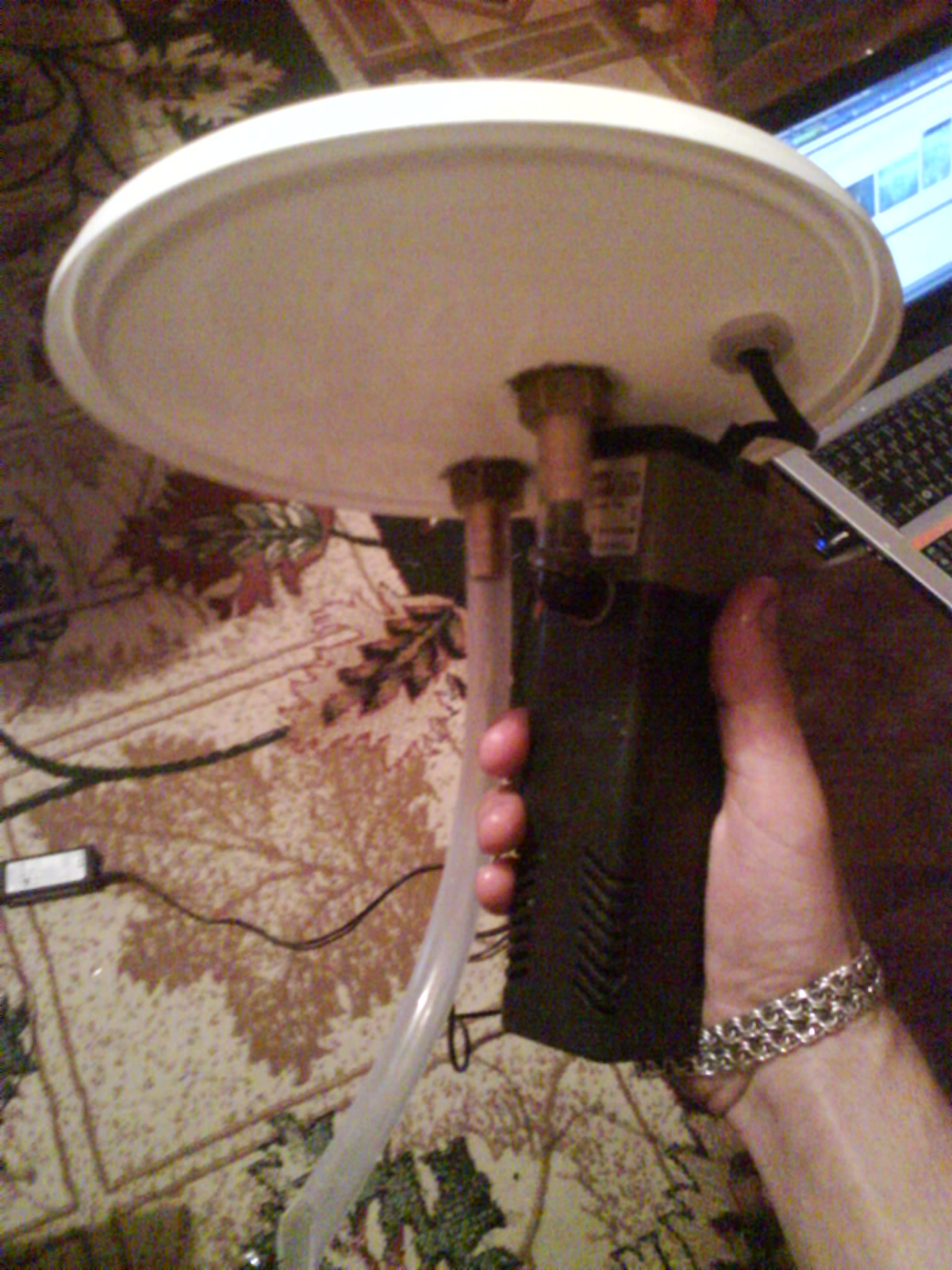 ...Он стоит на 10 см ниже уровня воды в акве когда я выключаю насос крышка слегка надувается.