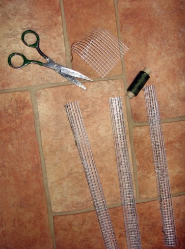 Проще всего нашить таких сеток из среднеячеистых женских чулков(чтобы получались круглые шарики) или из строительной или антимоскитной сетки(чтобы получались цилиндрические формы, в виде колонн. На фото ниже весь процесс изготовления последних, поэтапно :