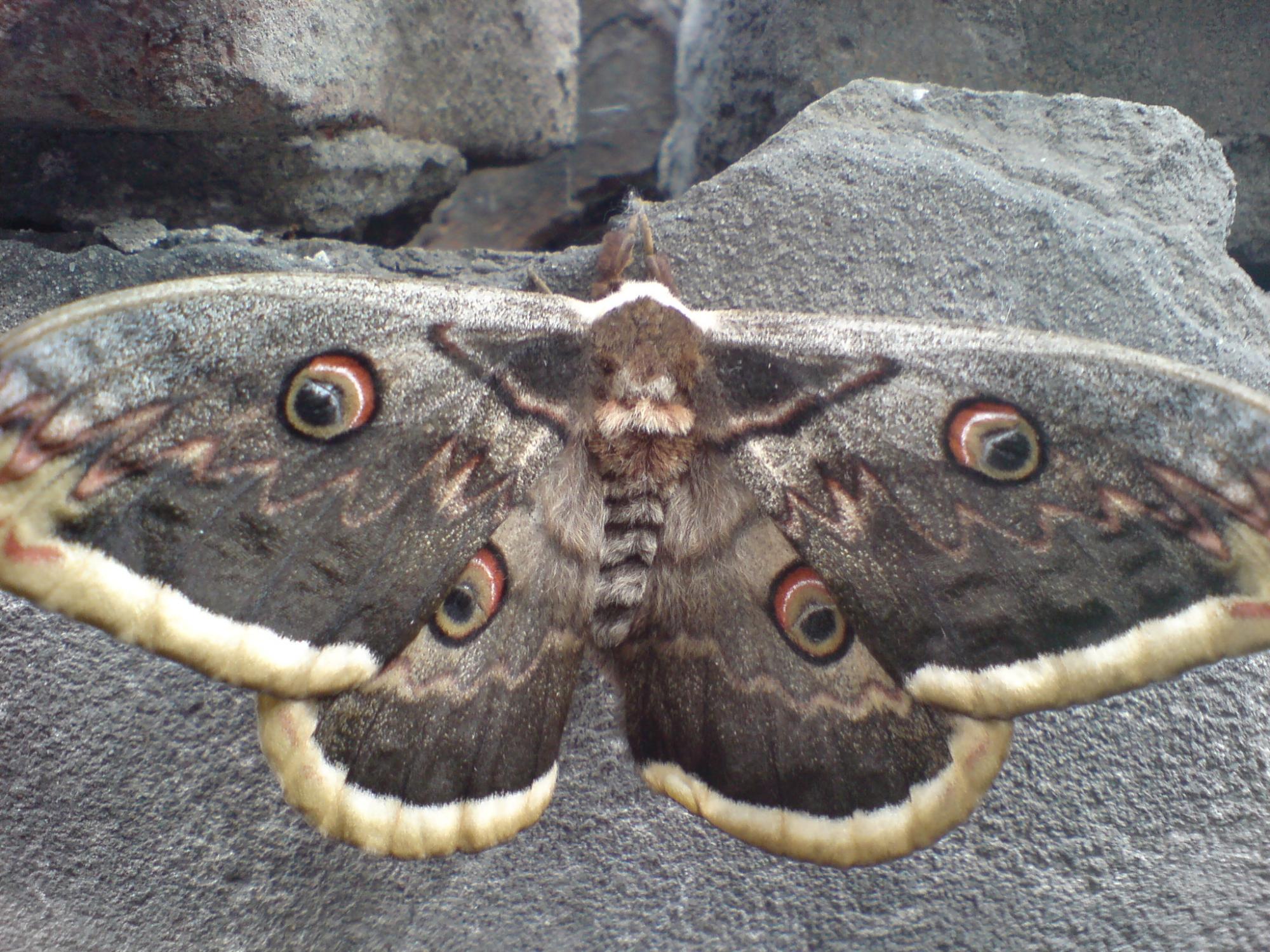Это ночной павлиний глаз, очень похож на дубового шелкопряда. Вот шелкопряд для сравнения: