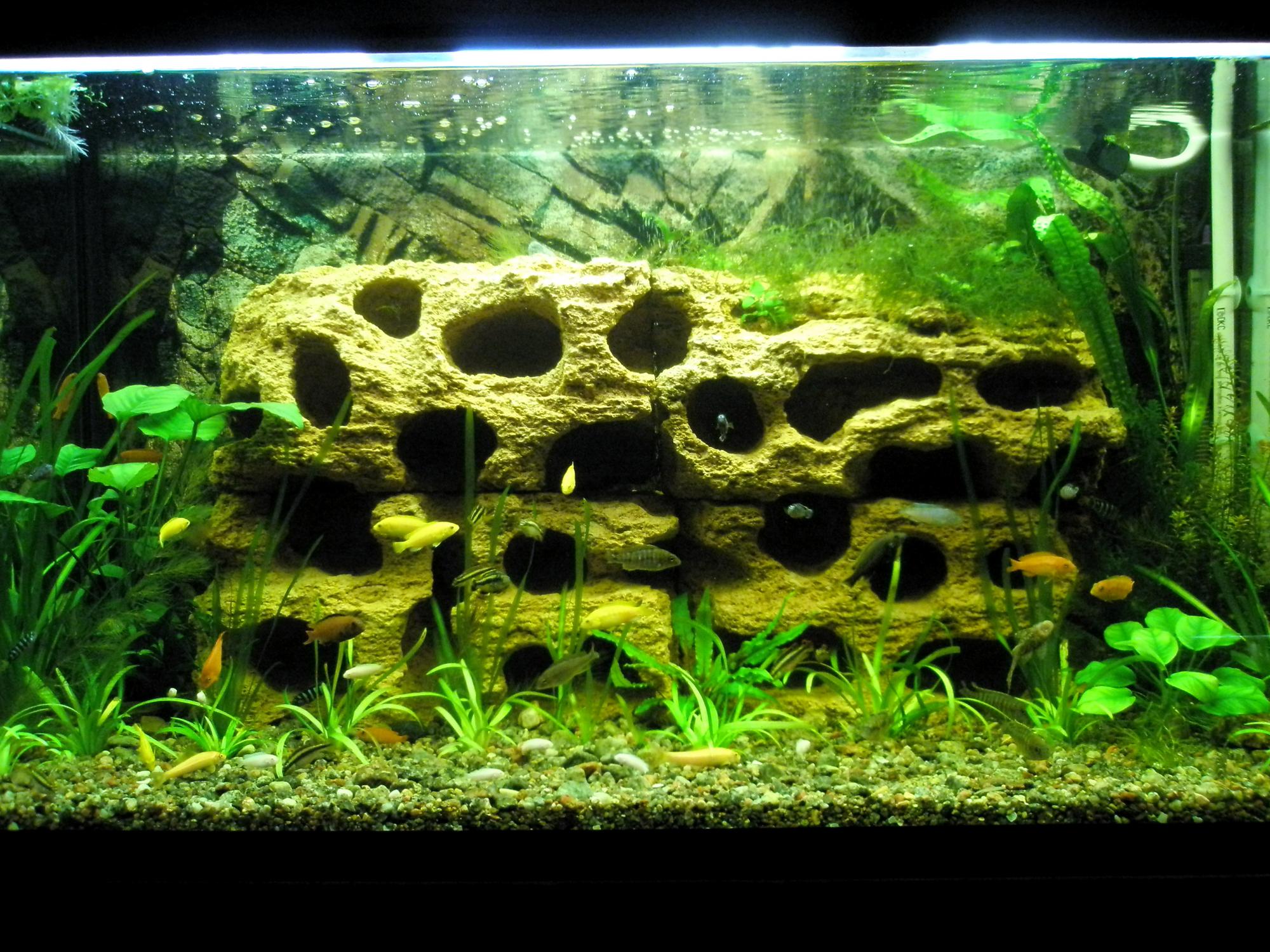Как не странно но мои малавийчеги растения не портят, зато им очень нравится соскабливать с ракушняка зеленый налет. Вот собственно теперешнее состояние банки. http://aquaforum.kiev.ua/attachment....1&d=1241093353