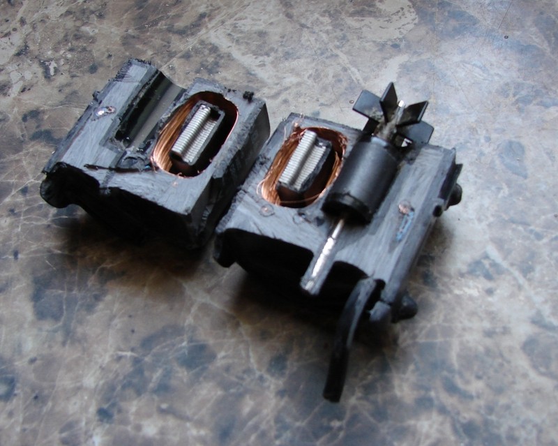 Импеллер здесь из неплохих, т.к. крыльчатка свободно делает на оси почти оборот, пока выступы на ней и на пластинке у основания магнита не сцепятся. Сделано это для облегчения старта.