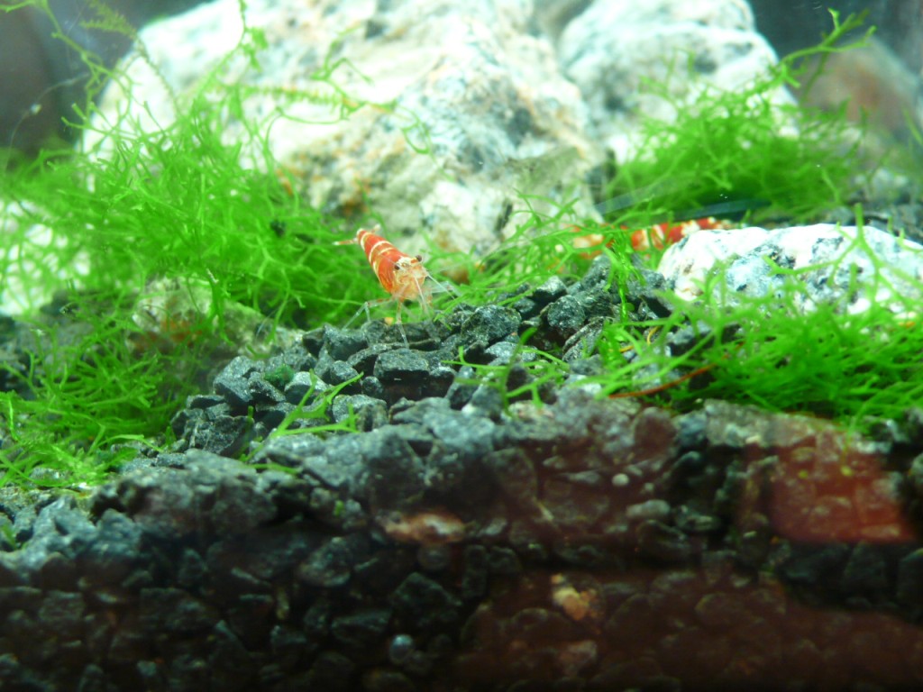 Аквариум 10л:создавался с целью поселить в него креветок кристалл ред, чтобы создать им условия, принято было решение отказаться от прихотливых растений требующих СО2 и удо, выбор пал на мхи.