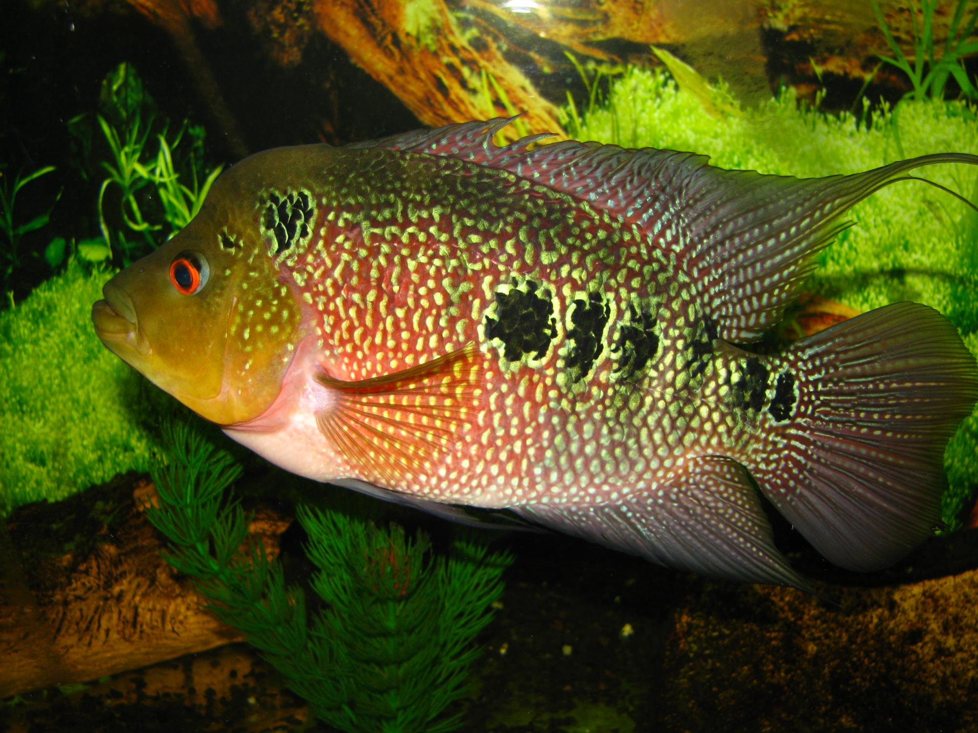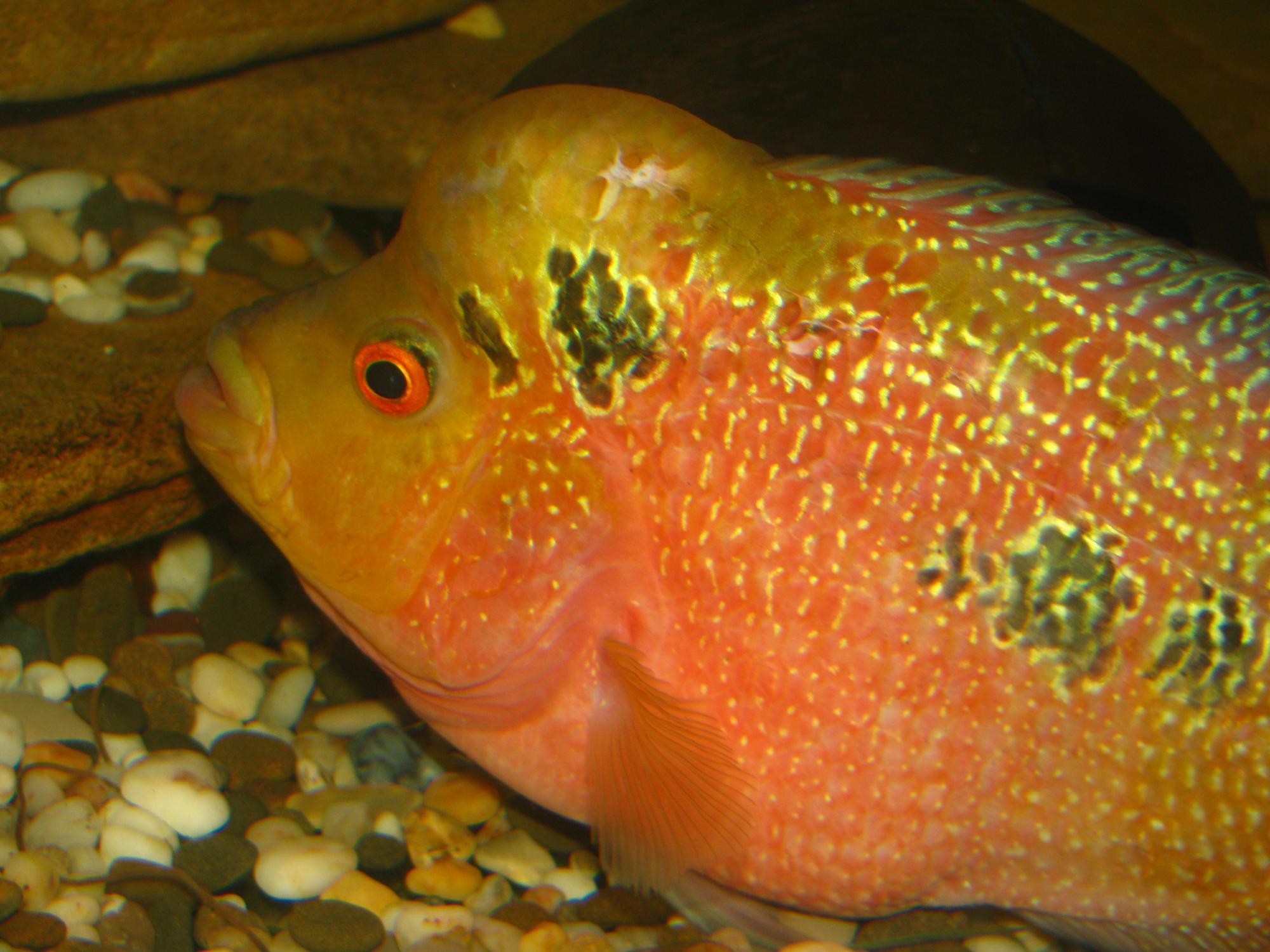 В Киеве на птичке купить хорошего Хорна практчески нереально, одни селедки продаются, непонятно с кем их скрещивали. Змей прав, это лотерея! Я много пересмотрела рыбы, пока выбрала своего, подростку было месяца 4, привезен из Таиланда, сказать, что он был красивым я не могу, но он явно отличался от базарных. Уж очень выразительная у него была мордашка, я не ошиблась, сейчас рыбу все называют пупсом! А на счет окраса, многое зависит от питания, фарш я готовлю сама, обязательно добавляю немного морковного сака, креветка также является хорошим природным красителем. Так, что ищите, покупайте, не пожалеете! Рыба очень позитивная и общительная!