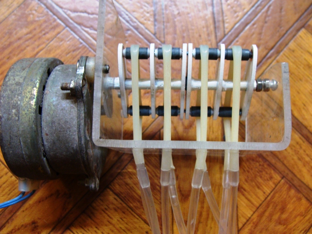 Хочу представить на всеобщее обозрение 4-х канальный дозатор. Питание двигателя 220в. 2 об/мин. Производительность одного канала 1мл/5мин. Ориентировочная стоимость, напрямую зависит от того, за сколько вы купите подходящий для вашего дозатора двигатель. Остальные детали обойдутся в копейки. Ну и плюс стоимость мех. таймера.