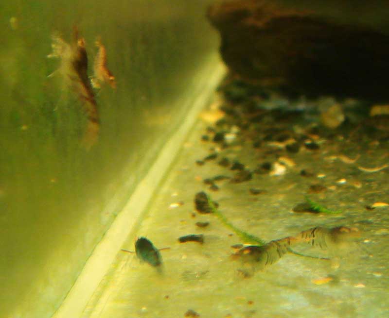 Растут. Первый выводок уже подбирается к 1 см. Есть ещё, как минимум, 3 выводка (есть размер 5-6 мм, 3-4 и совсем козявки). Как только самки доносят икру, пересажу их в другую банку и буду сортировать молодняк. Синих немного, но всё же имеются, так что если скрестить пальцы, надежда есть.